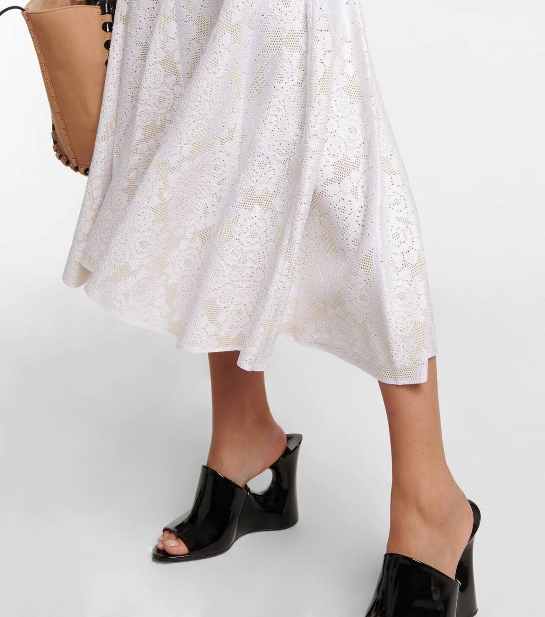 Betonen Sie stilvoll Ihre Taille: Dieses Midikleid von Alaïa zeigt sich im Corsagen-Look und ist aus Crêpe gefertigt. Das Design mit Spitze kombiniert ein figurnahes Mieder mit einem flatternden, langen Rock.