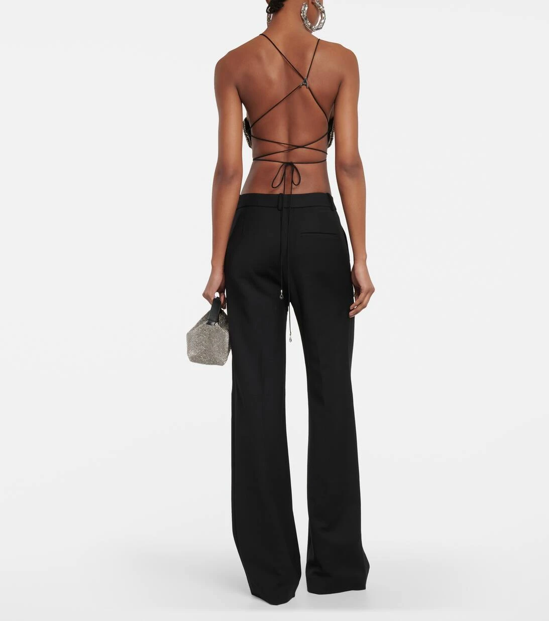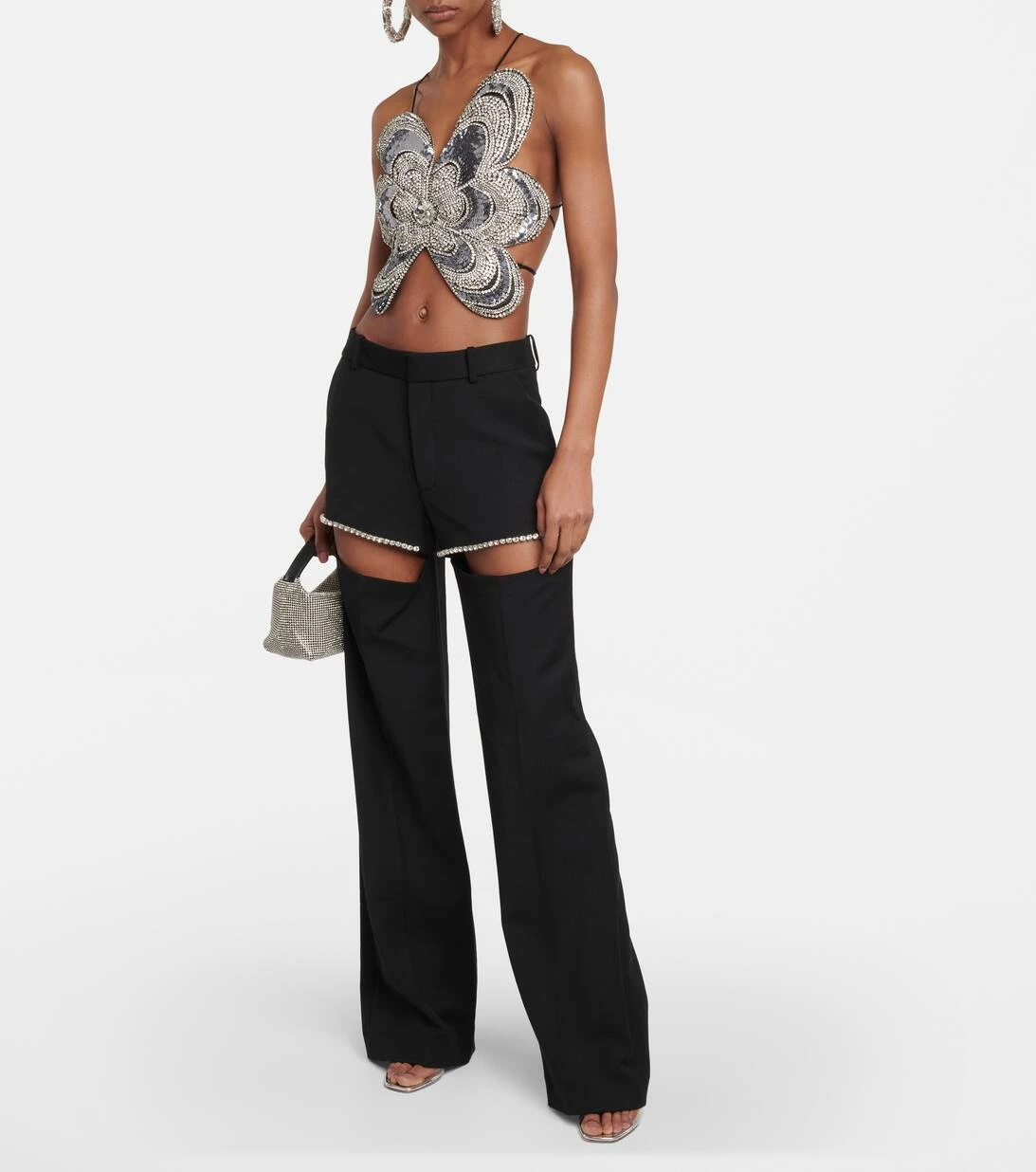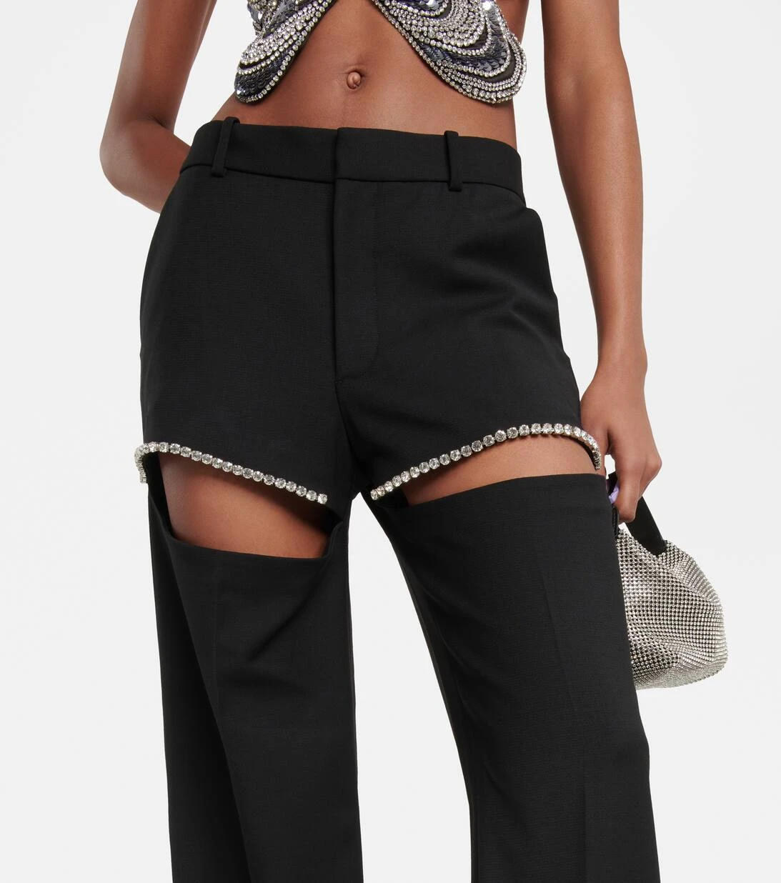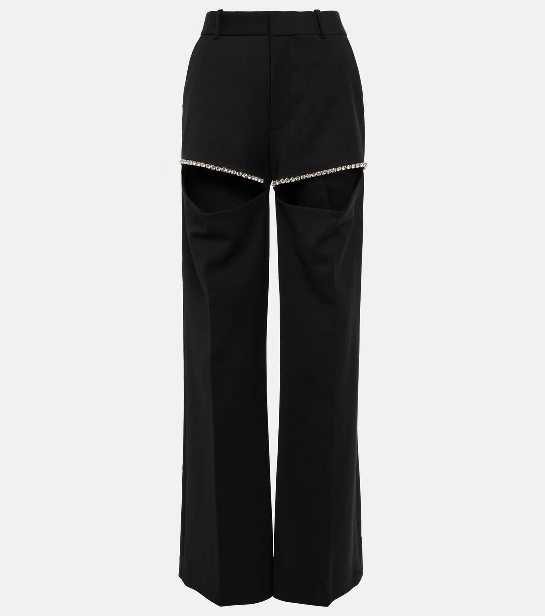 Diese High-Rise-Hose von Area wurde aus Woll-Crêpe gefertigt und mit extra langen Beinen versehen. Sie zeichnet sich durch Cut-out-Details mit Kristallbesatz auf der Vorderseite aus.