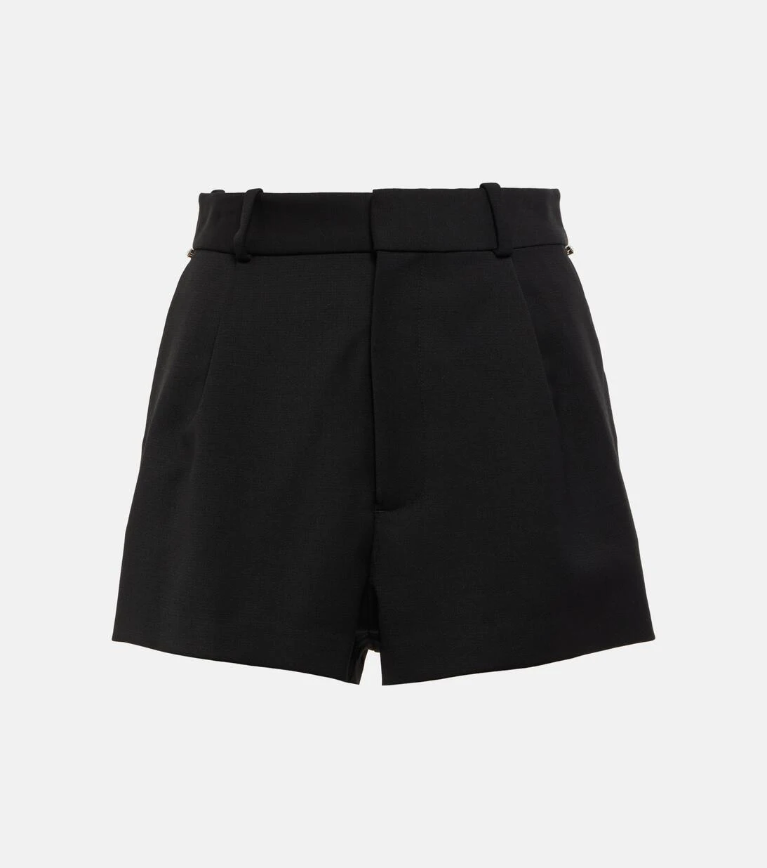 Diese High-Rise Shorts von Area wurden aus Woll-Crêpe gefertigt. Sie zeichnen sich durch ein Cut-out mit Kristallen und ein Schleifendetail auf der Rückseite aus.