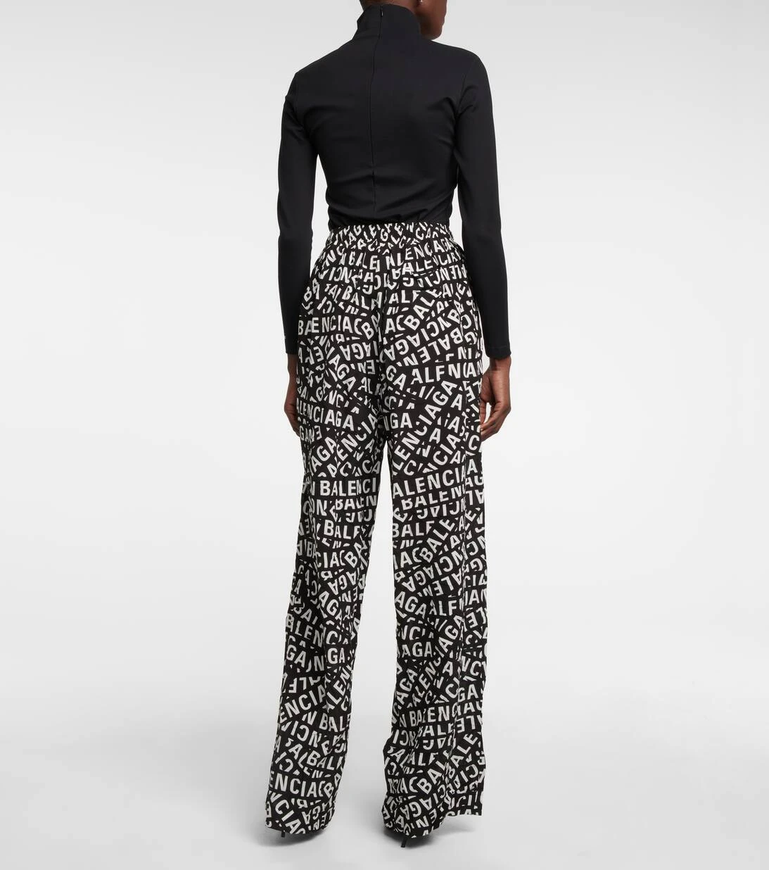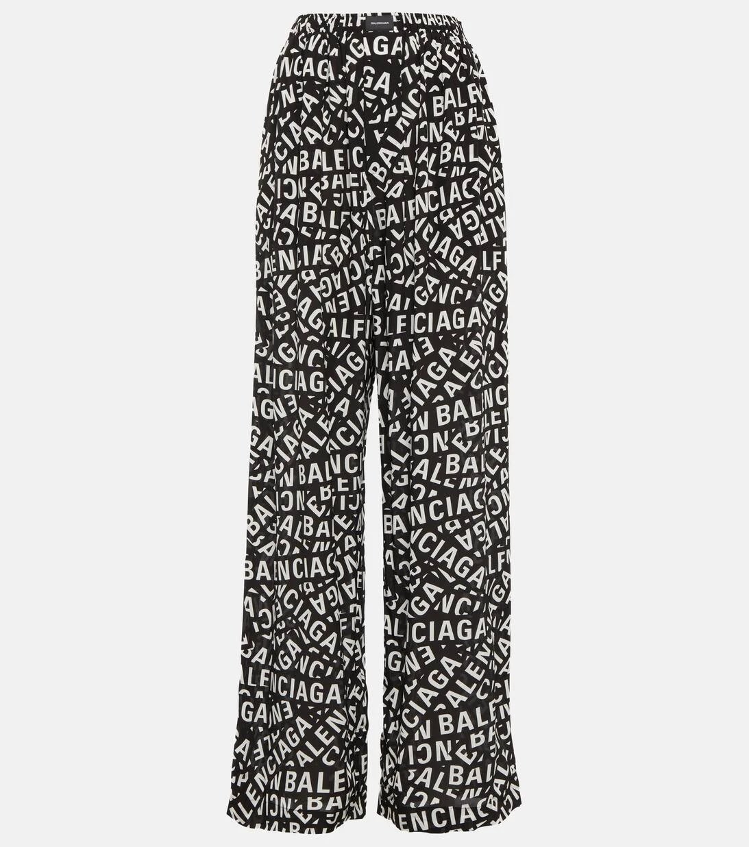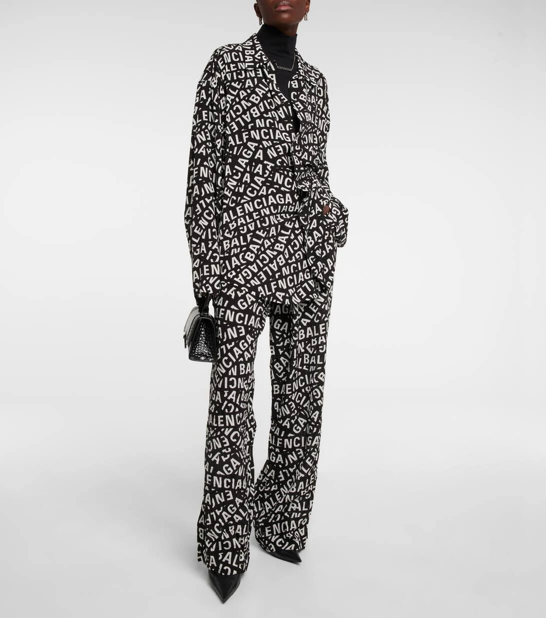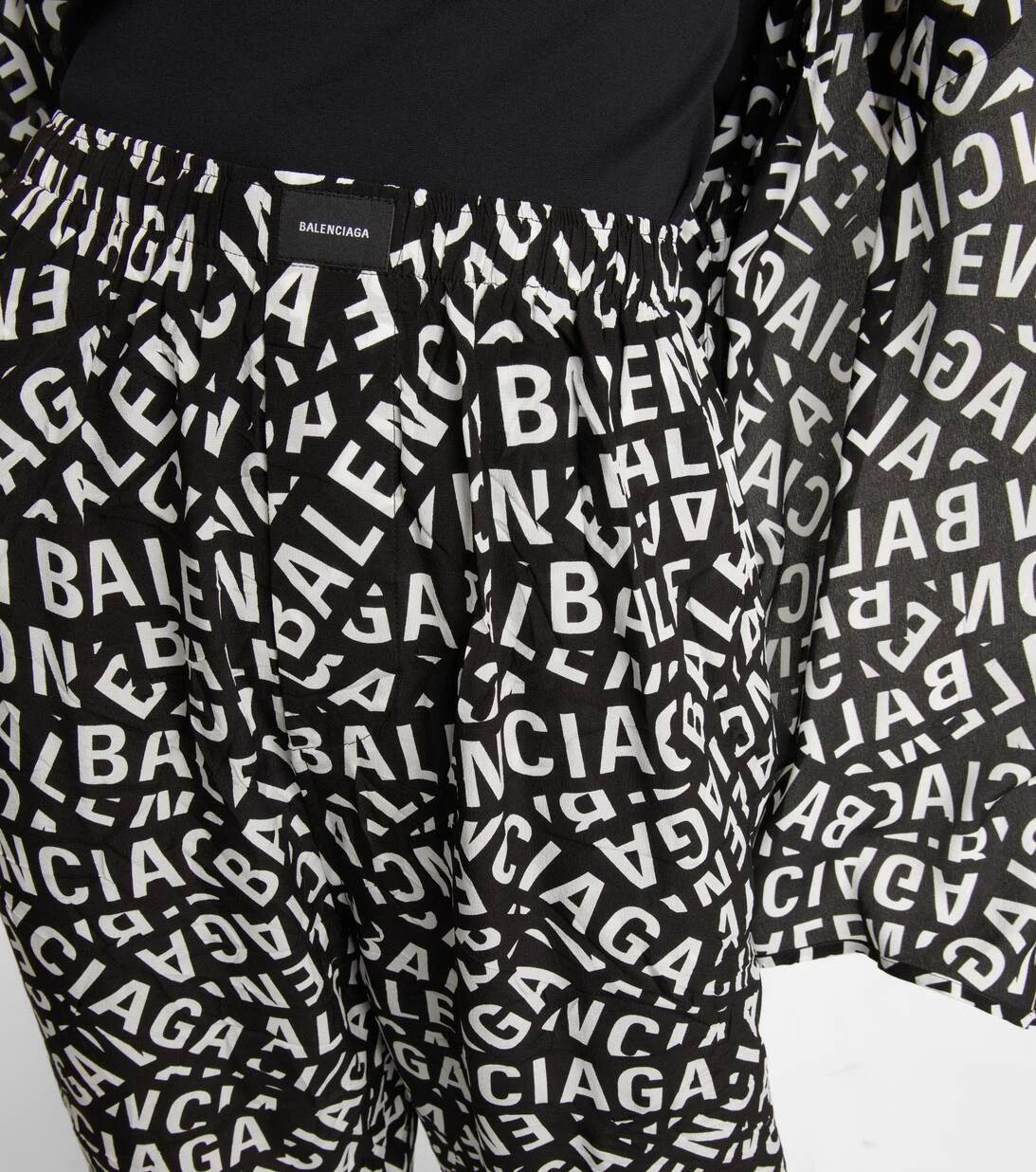 Diese Hose von Balenciaga aus Seiden-Crêpe hat eine entspannte Silhouette im Stil eines Pyjamas. Ein Jacquard-Muster des Logos rundet den Look ab.