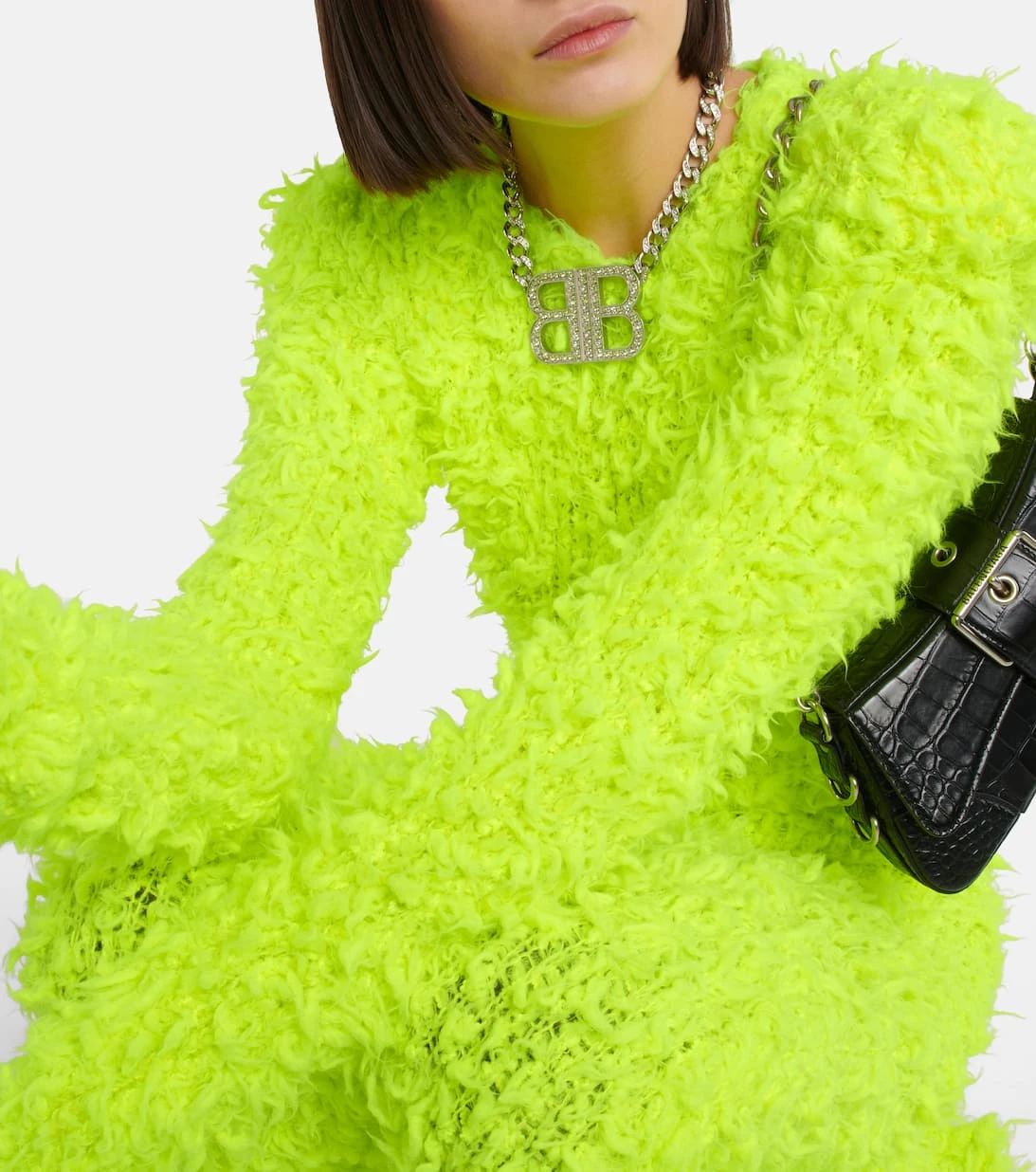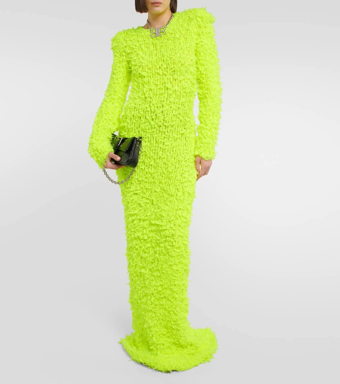 Balenciaga verleiht Ihrer Abendgarderobe mit der auffälligen Fluffy Robe, die Teil der Frühjahr/Sommer 2023 Kollektion der Marke ist, eine taktile Note. Das strukturierte Design verfügt über geformte Schultern, eine figurbetonte Passform und einen bodenlangen Saum.