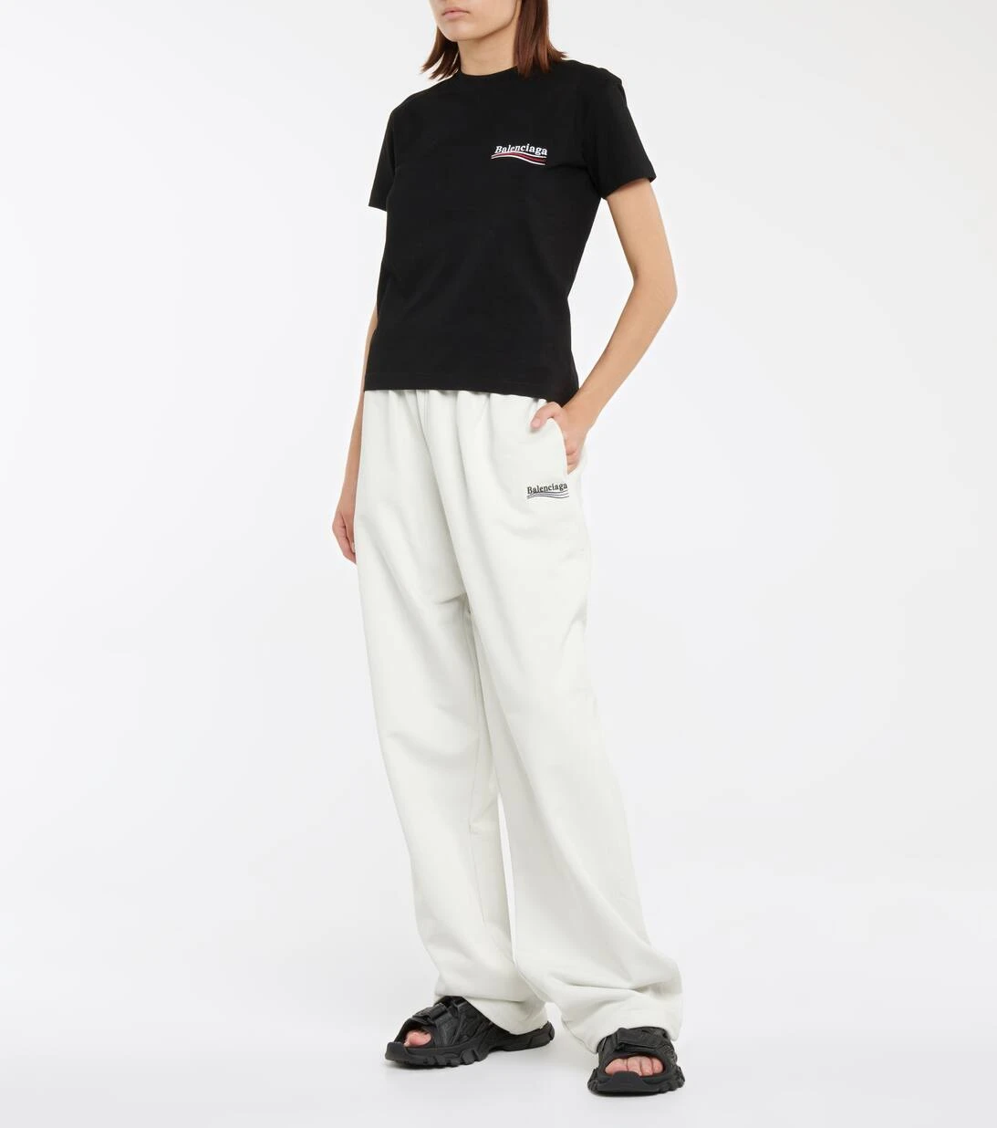 Auch in dieser Saison sorgt Balenciaga für politische Statements. Dieses aus reiner Baumwolle gefertigte schwarze T-Shirt in übergroßer, verlängerter Silhouette wird mit dem unverwechselbaren Logo des Labels auf der Brust sowie überschnittenen Schultern akzentuiert. Tragen Sie es über Ihren Hosen, um den extra langen Saum zu betonen.