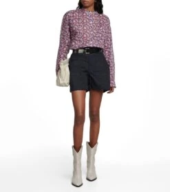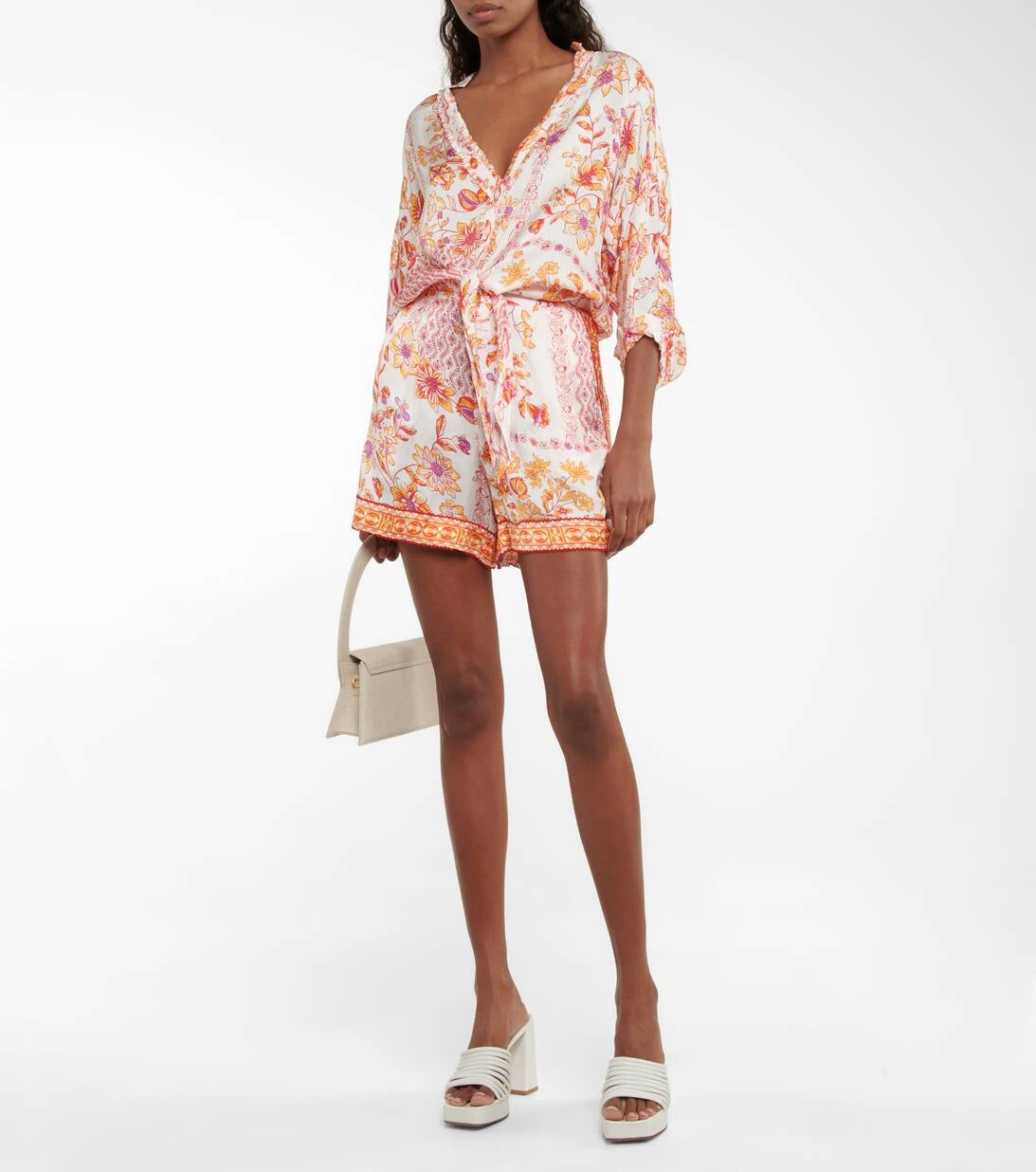 Die Isabelle Shorts aus Satin von Poupette St Barth haben eine geknöpfte High-Rise-Taille mit leicht plissierter Vorderseite. Das Modell ist mit einem durchgehenden Blumenprint versehen und zeigt sich am Saum mit farbenfrohen Picots.