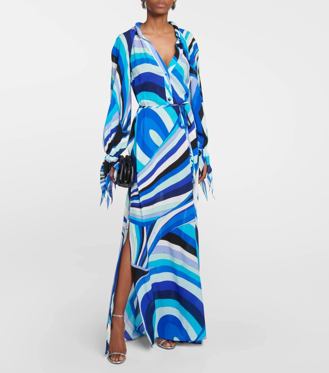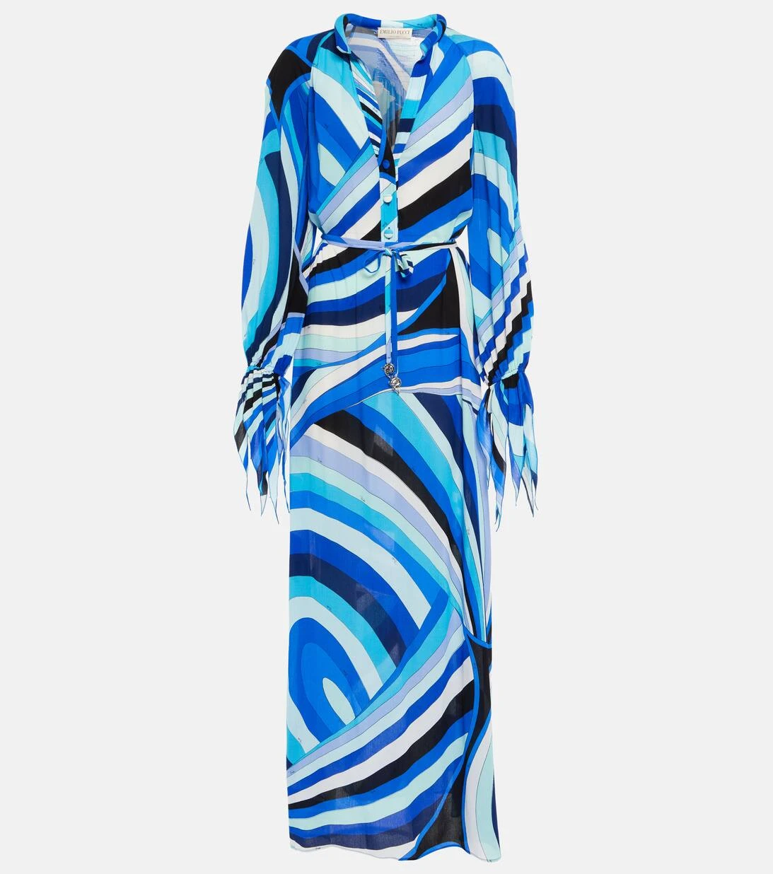 Verfeinern Sie Ihre Resort-Garderobe mit diesem bedruckten Kaftan aus Satin von Pucci. Das legendäre psychedelische Wirbelmotiv ist ein Markenzeichen, das Pucci den Ehrentitel „Prinz der Prints“ einbrachte.