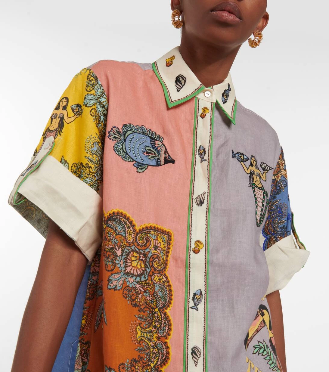 Nichts verkörpert den Sommer so wie das Trippy Troppo Hemd von Alémais. Das Design aus reinem Leinen mit luftiger Oversize-Silhouette ist mit lebhaften Prints und Stickereien verziert.