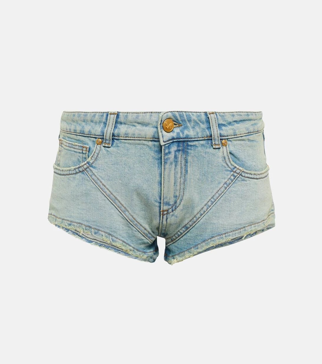 Blumarine setzt mit diesen kurzgeschnittenen Low-Rise Shorts auf den aktuellen Micro-Trend. Das Modell aus elastischer Baumwolle in heller Waschung verfügt über Distressed-Säume.