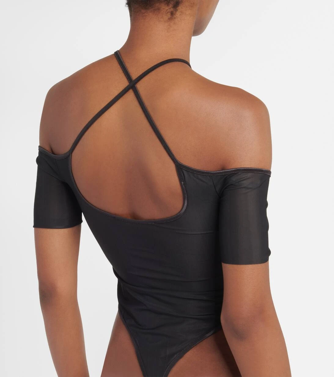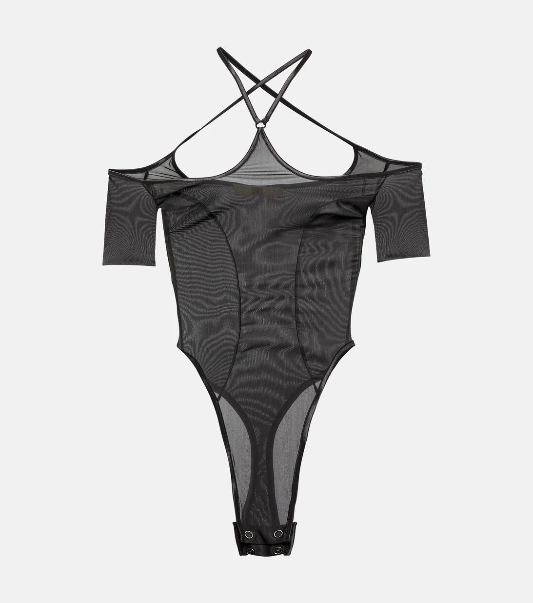 Bei KNWLS finden Sie sinnliche Silhouetten und elegante Basics für Ihre Garderobe. Dieser Neckholder-Body aus transparentem grauem Mesh hat eng anliegende Ärmel und ein strukturiertes Oberteil mit Stäbchen.