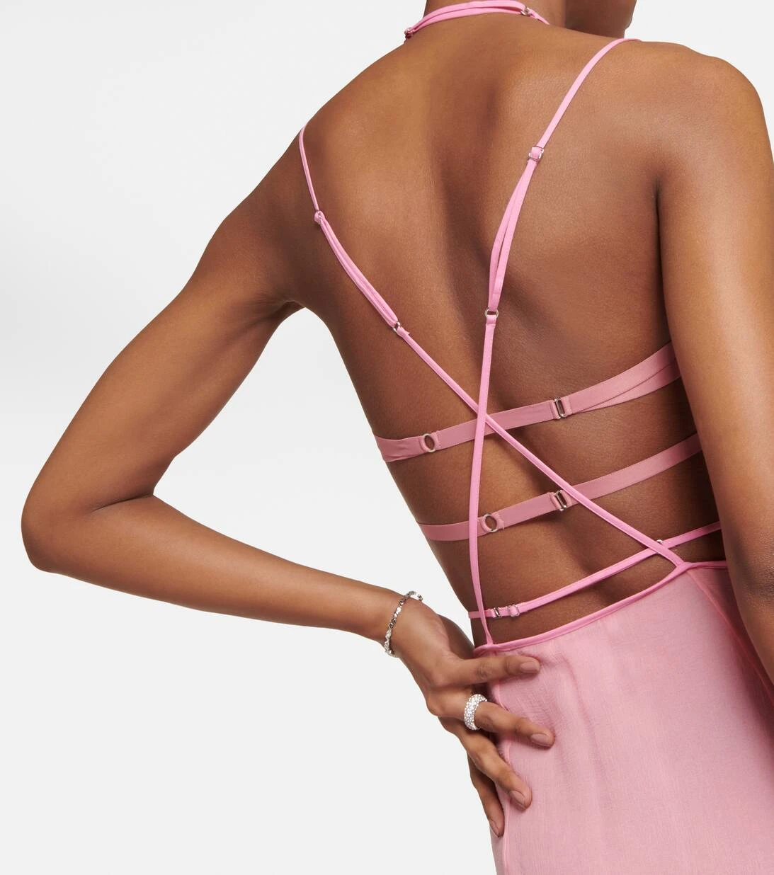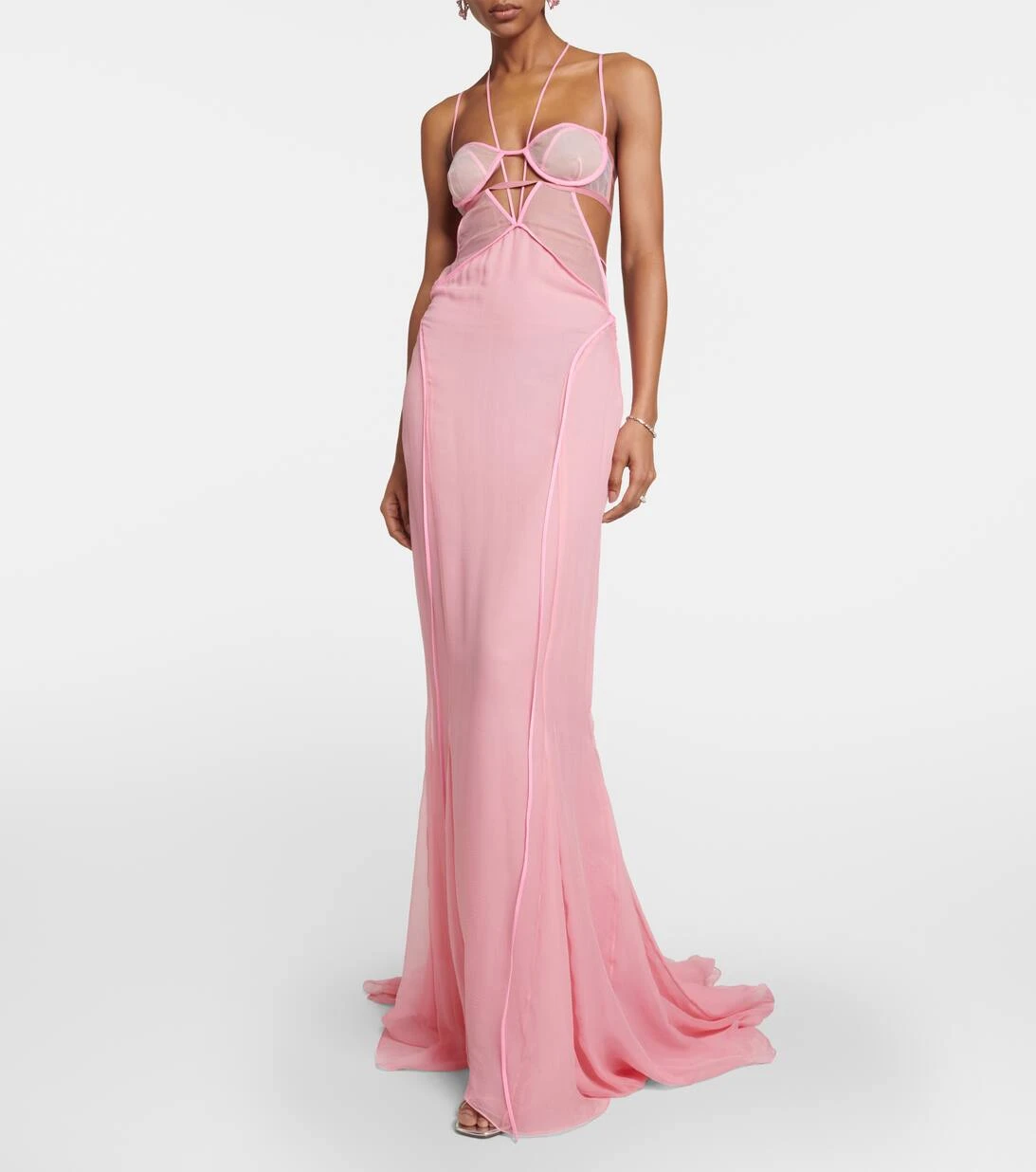 Kreieren Sie mit dieser rosafarbenen Robe aus der exklusiven Bridal-Kollektion von Nensi Dojaka ein unvergessliches Ensemble für Ihren großen Tag. Das Design wurde aus fließendem Seiden-Chiffon in Italien zu einer elegant drapierten Silhouette gefertigt. Ein besonderes Highlight sind die mit Bügeln versehenen Cups mit Einsätzen aus Seiden-Organza, welche Ihren natürlichen Konturen schmeicheln.