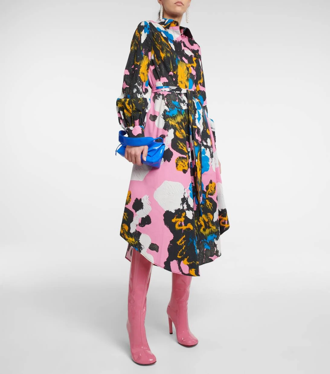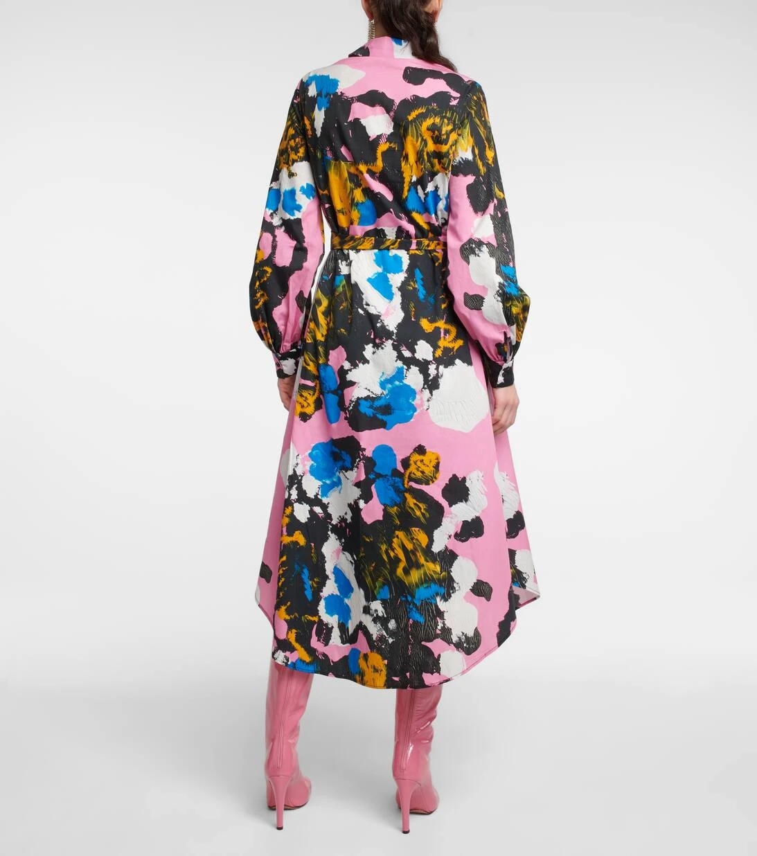 Das Mindscape Hemdblusenkleid von Christopher Kane wurde aus Jersey aus reiner Baumwolle in mit geschwungenem, mittellangem Saum gefertigt. Das lockere Modell mit langen Ärmeln zeigt abstrakte Farbkleckse, die von einem Kunstwerk des Designers stammen.