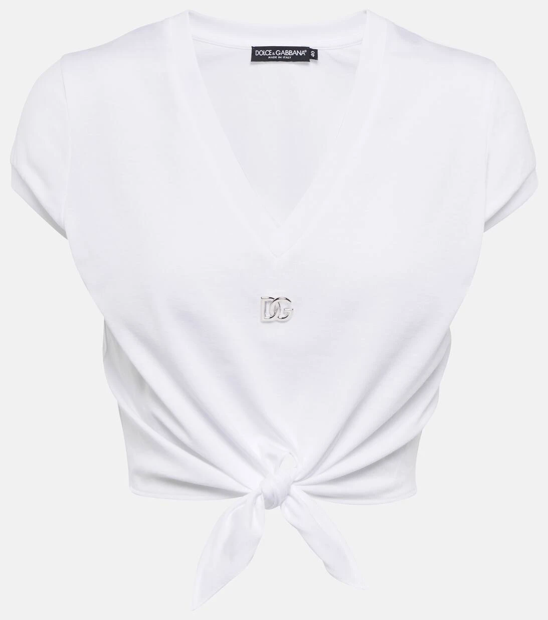 Ergänzen Sie opulent bedruckte Röcke etwa mit diesem weißen Top von Dolce&Gabbana. Das Design aus Baumwolle verfügt über ein feminines Knotendetail und ein silberfarbenes Logo-Emblem.