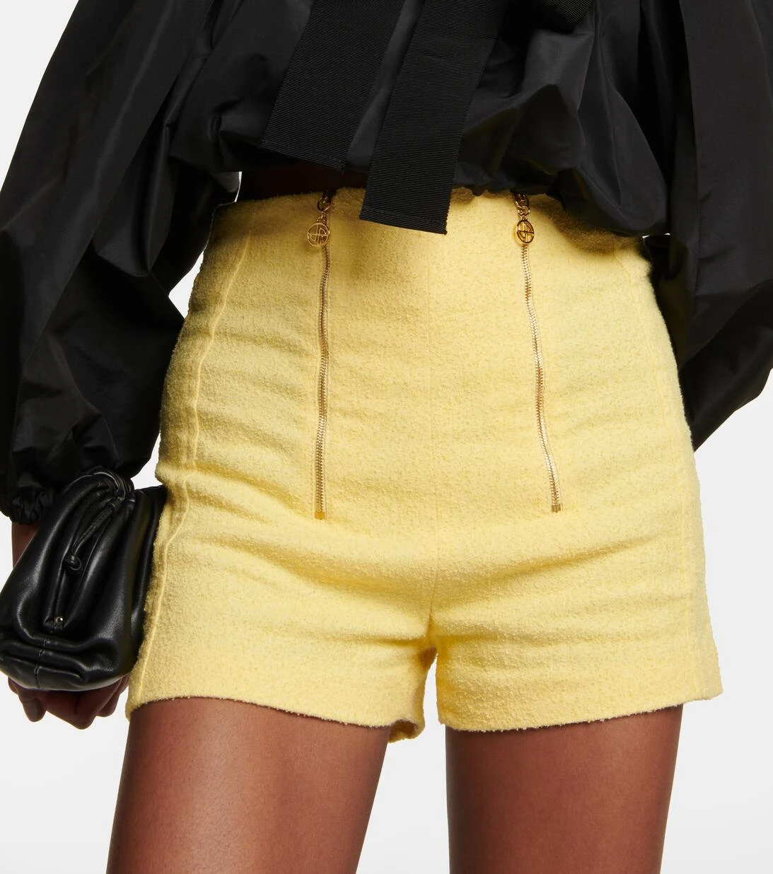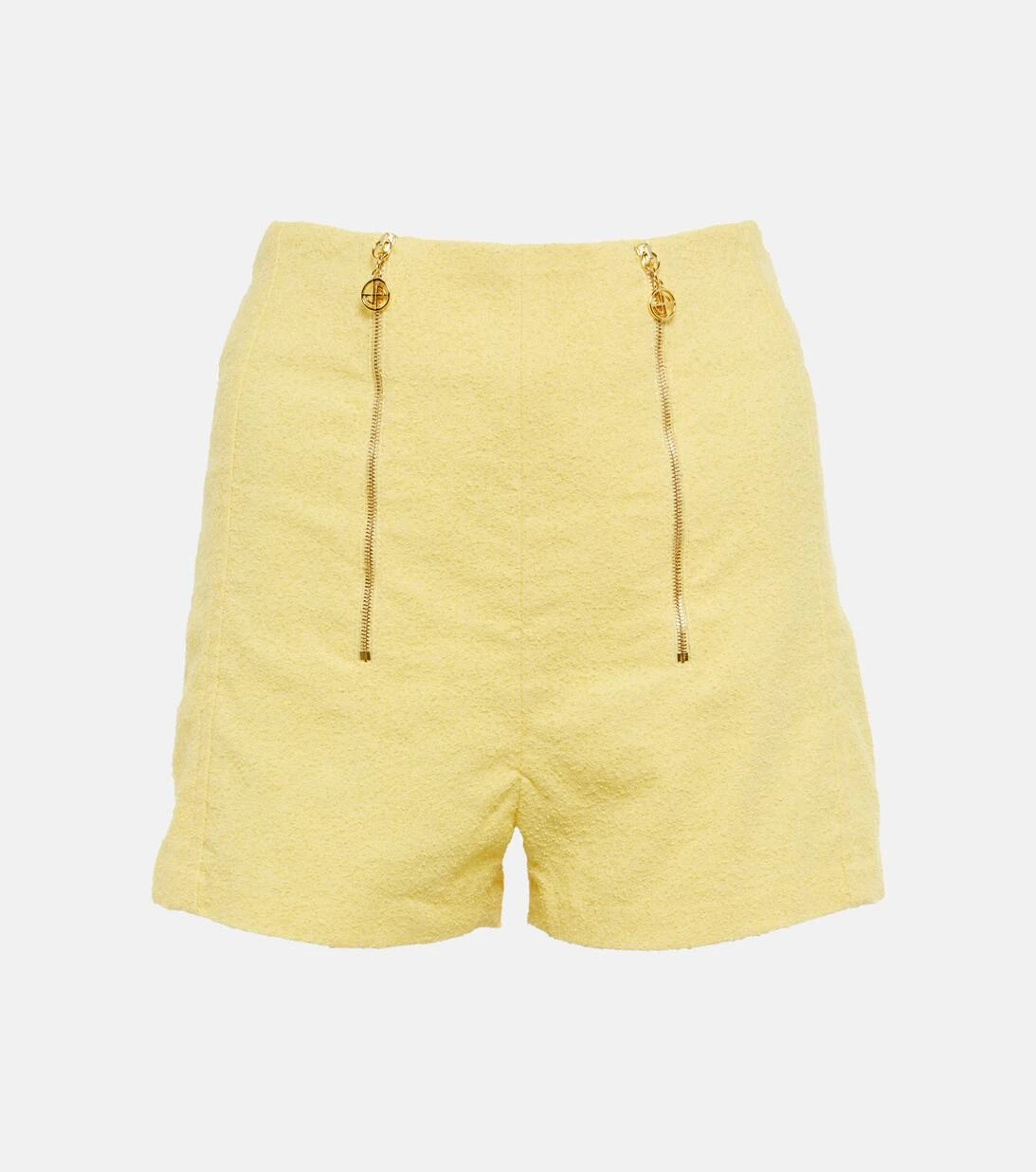 Diese High-Rise Shorts von Patou wurden aus Tweed gefertigt und mit Abnähern versehen. Sie verfügen über goldfarbene Reißverschlüsse und zeigen die charakteristischen geschwungenen Nähte des Hauses auf der Rückseite.