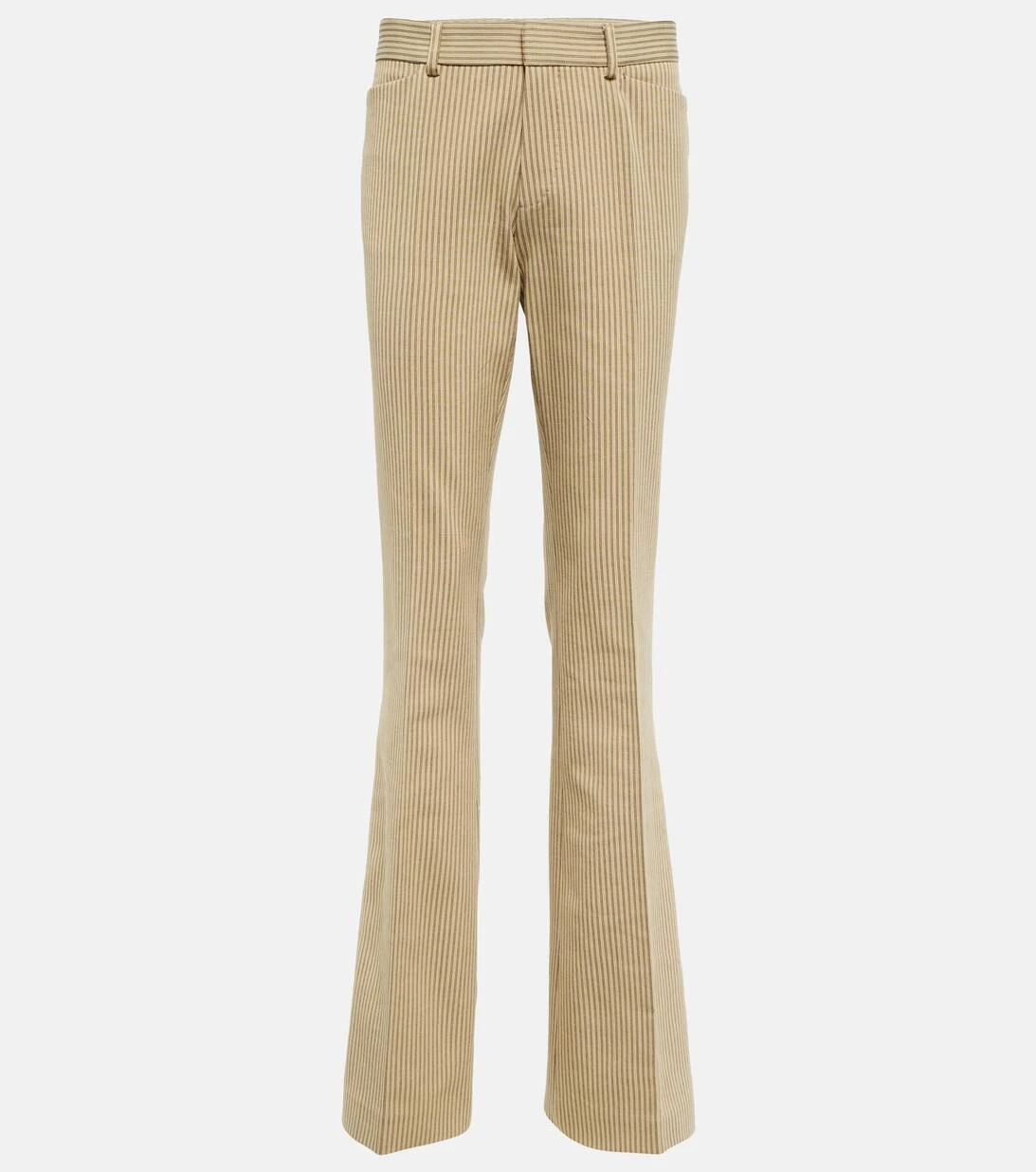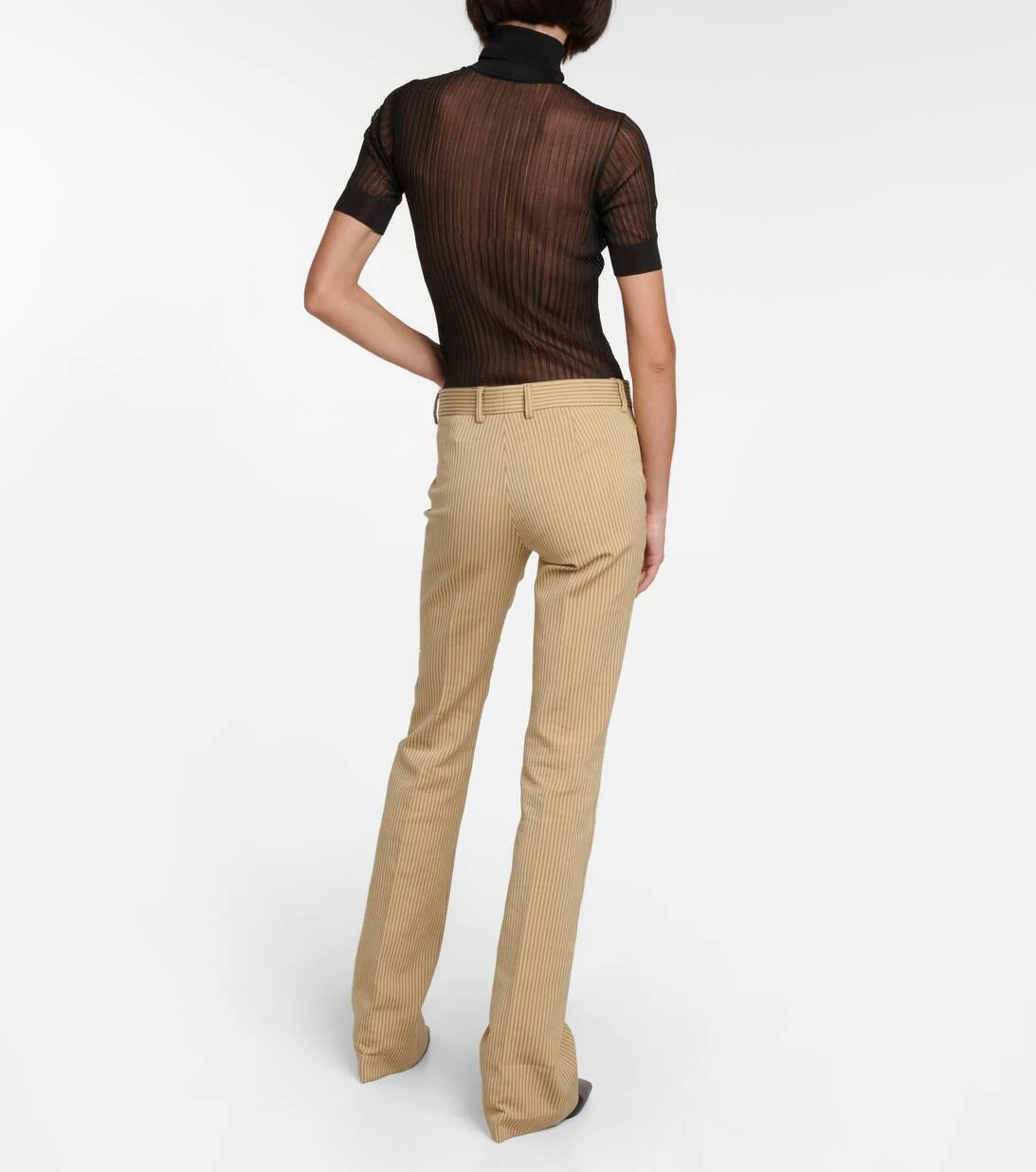 Verfeinern Sie Ihre Alltagsgarderobe mit dieser Hose von Petar Petrov. Das Jacquard-Design mit Nadelstreifenmuster wurde aus einem Gemisch aus Baumwolle und Wolle gefertigt. Die stylische Low-Rise-Silhouette zeigt sich mit einem leicht ausgestellten Bein.