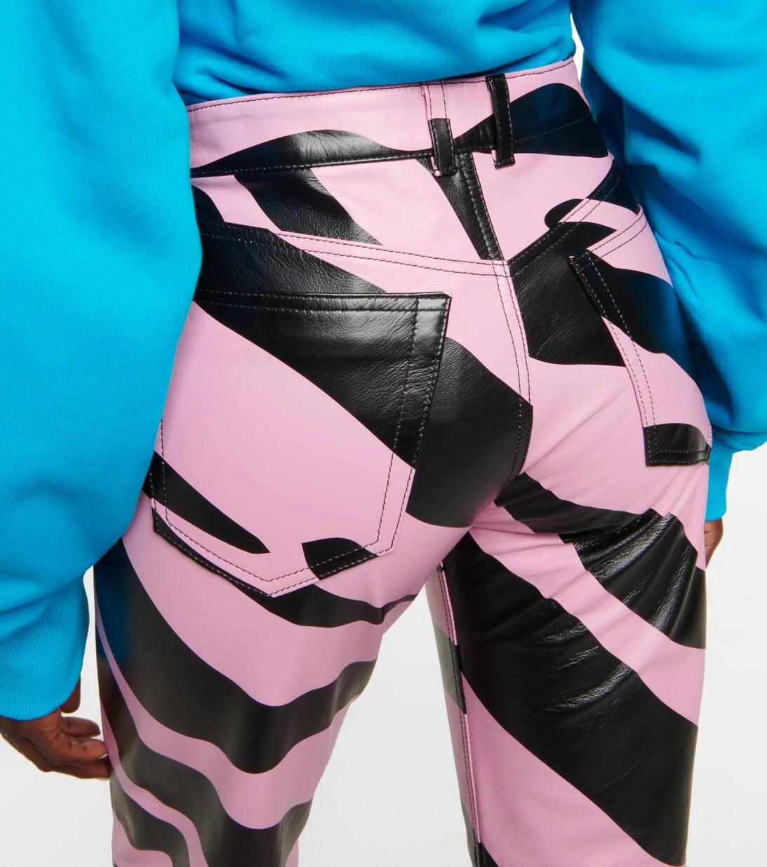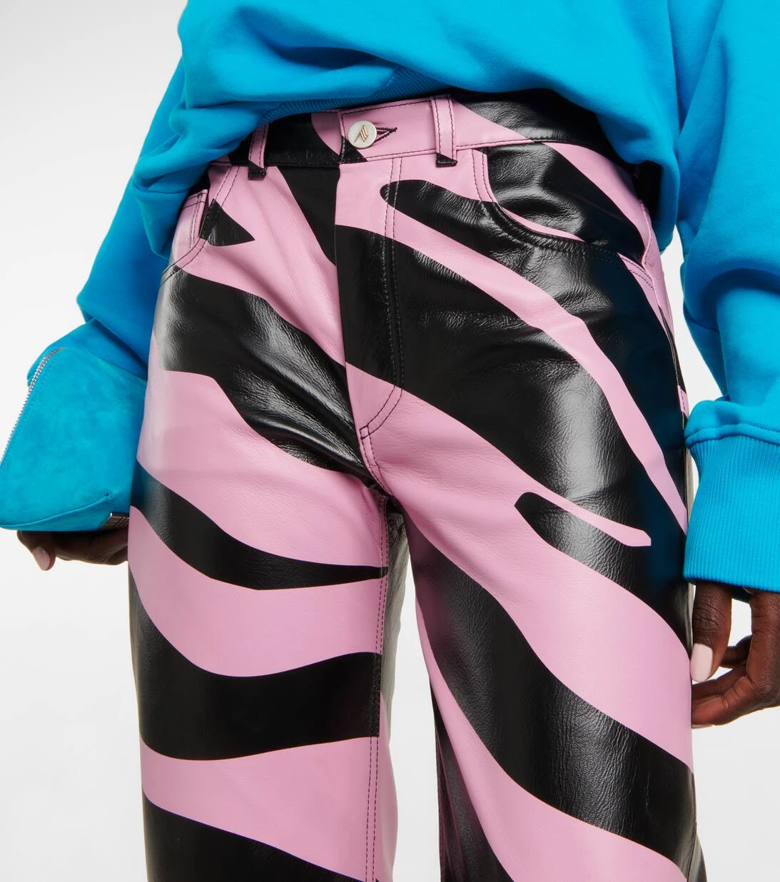 Diese Lederhose von The Attico präsentiert sich mit einem Zebramuster und schmalen Beinen, die ab dem Knie leicht ausgestellt verlaufen.