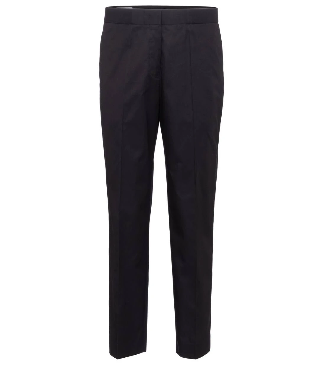 Nichts geht über Klassiker wie eine zeitlose Bundfaltenhose, die von Jil Sander auf typisch minimalistische Art interpretiert wurde. Das nachtblaue Design aus luftigem Baumwoll-Gabardine besitzt dabei einen fließenden, geraden Schnitt, der an der Ferse endet. Tragen Sie das in Italien gefertigte Modell genauso zu lässigen T-Shirts wie auch edlen Blusen.