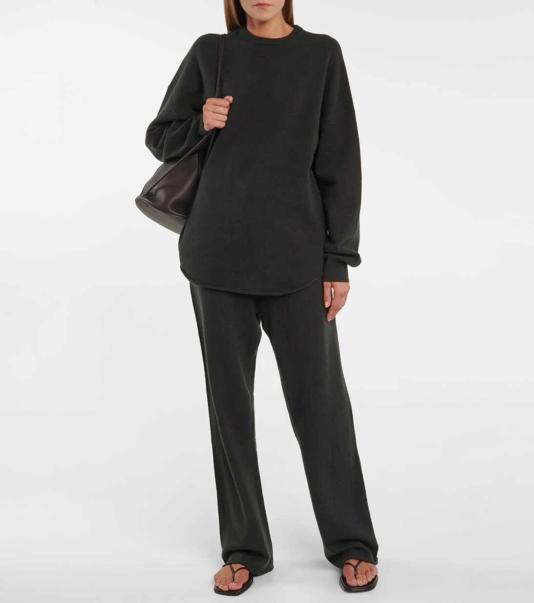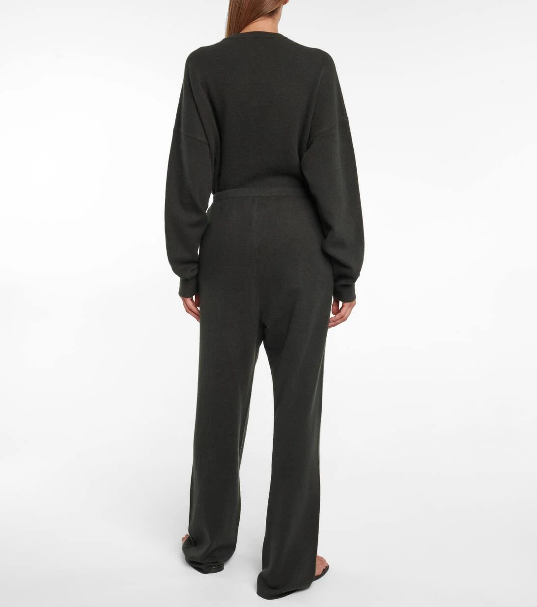 Die grüne N°142 Run Jogginghose von extreme cashmere ist aus dem labeltypischen Kaschmirgemisch gefertigt. Das Strickdesign besticht mit Tunnelzugbund, Taschen in den Seitensäumen und normaler Länge.
