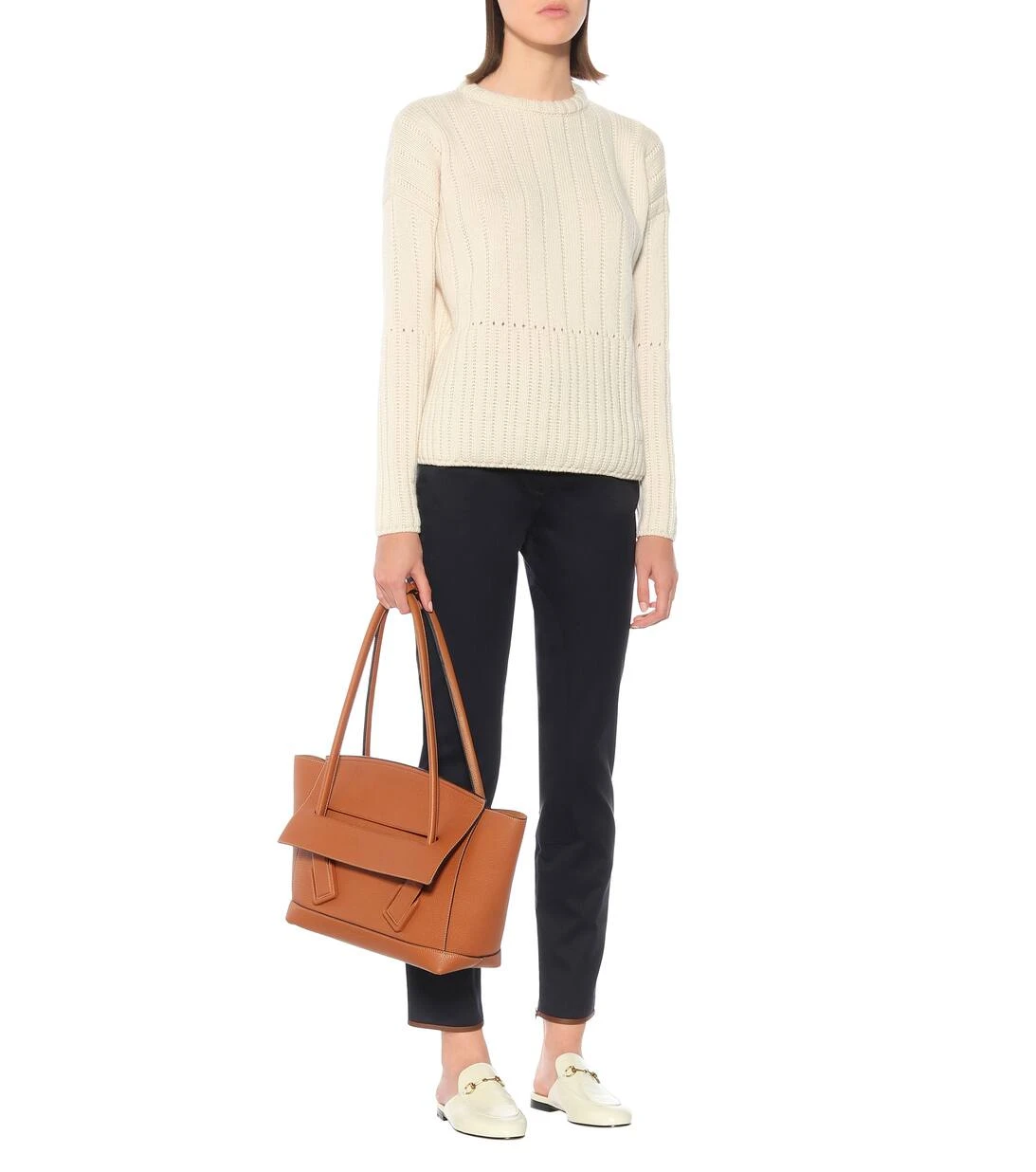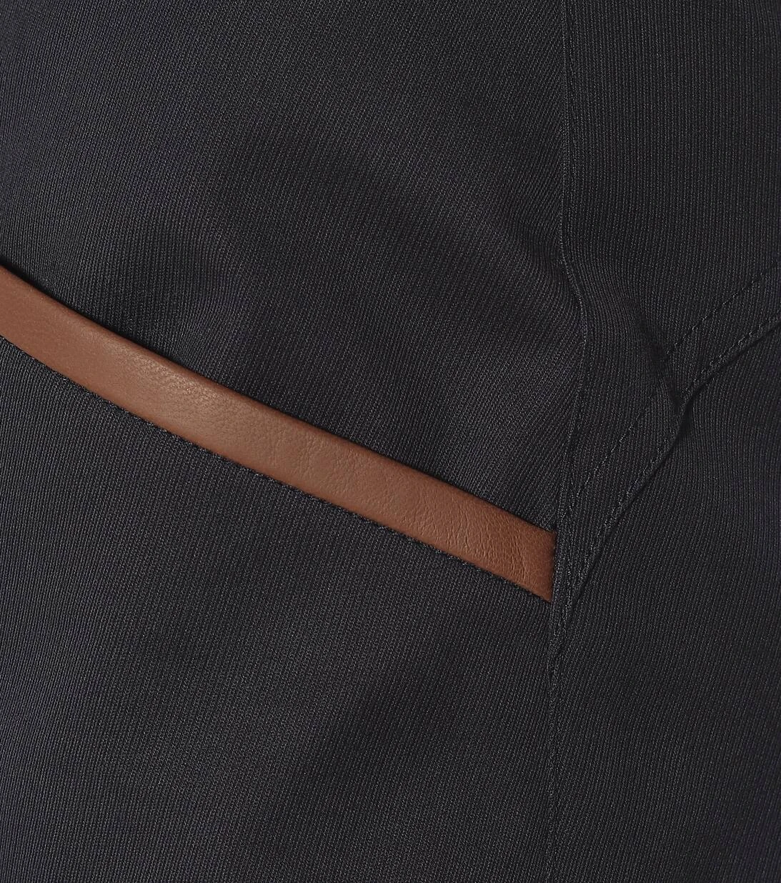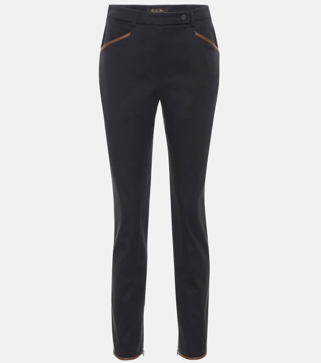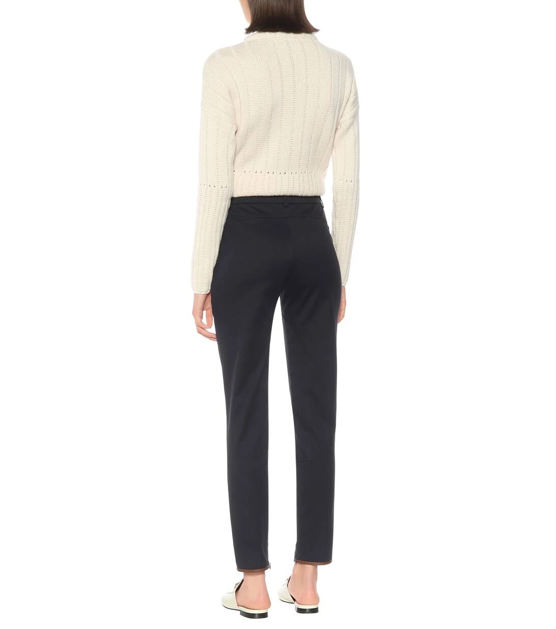 Für einen eleganten Look wählen Sie die Rickey Hose von Loro Piana. Das dunkelblaue Mid-Rise-Modell wurde in Italien aus komfortabler Stretch-Baumwolle gefertigt und mit Partien aus braunem Lammleder akzentuiert. Wir tragen einen schlichten Pullover und Flats dazu.