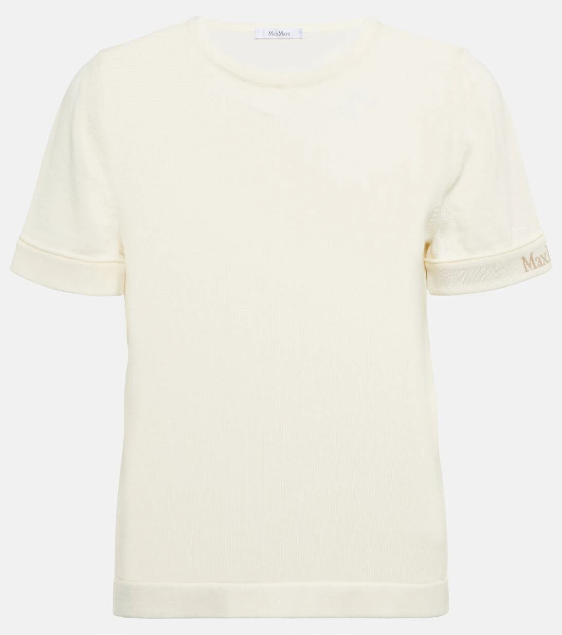 Das Limone T-Shirt von Max Mara aus gestreifter Baumwolle hat einen Logo-Schriftzug am Ärmel und einen Rundhalsausschnitt.