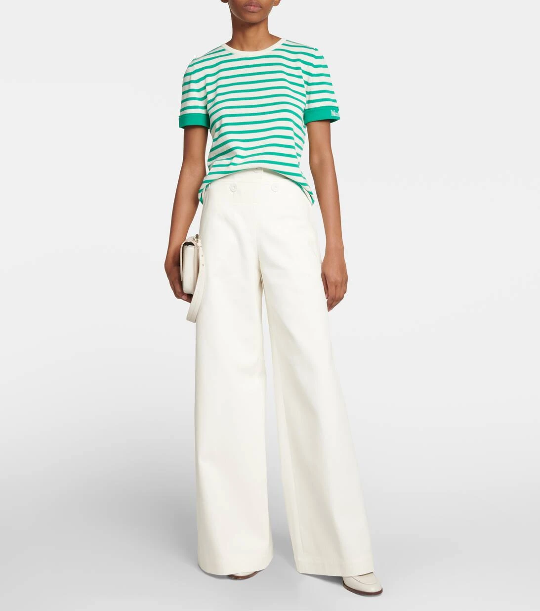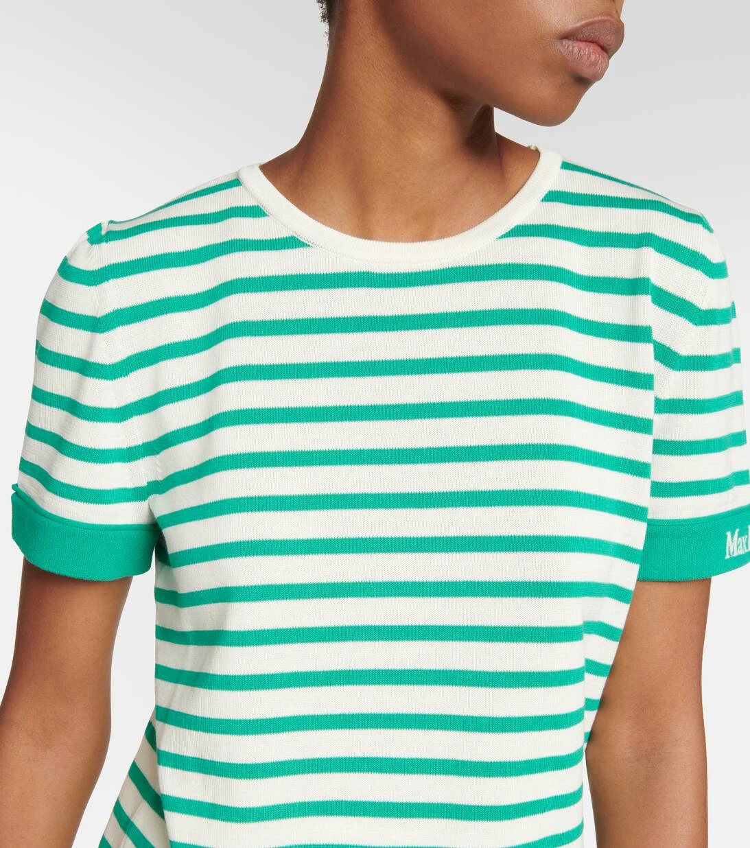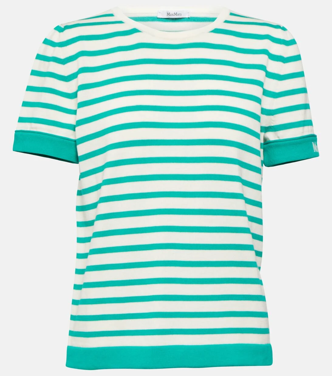Ergänzen Sie Ihre Basics mit dem Limone Top von Max Mara. Das Design aus Baumwolle mit durchgehendem Streifenmuster verfügt über einen Rundhalsausschnitt und ist an den kurzen Ärmeln mit Logo-Intarsien akzentuiert.