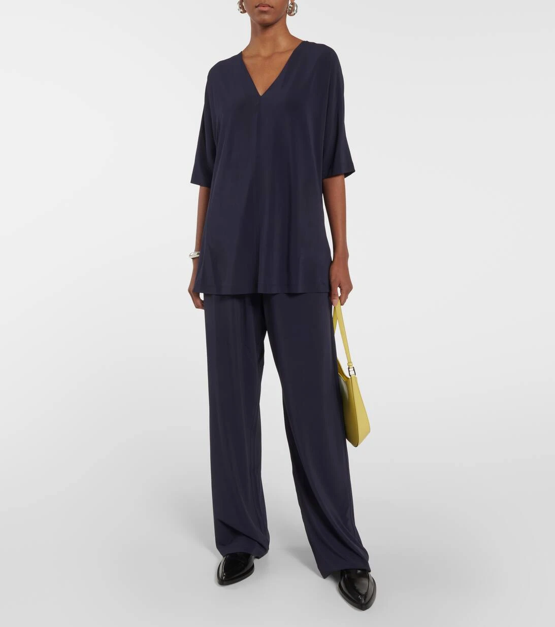 Das Locarno Top von Max Mara präsentiert sich in einer übergroßen Tunika-Silhouette mit V-Ausschnitt.