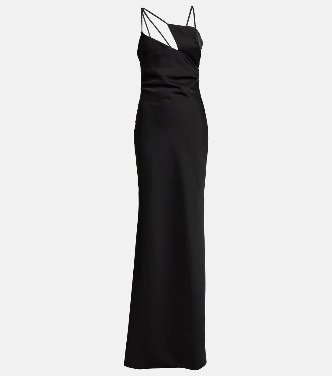 Das Melva Maxikleid von The Attico hat eine figurbetonte Taille und einen Rock mit langem Saum in A-Linie. Die asymmetrischen Spaghettiträger verleihen dem minimalistischen Look einen unvergleichlichen Twist.