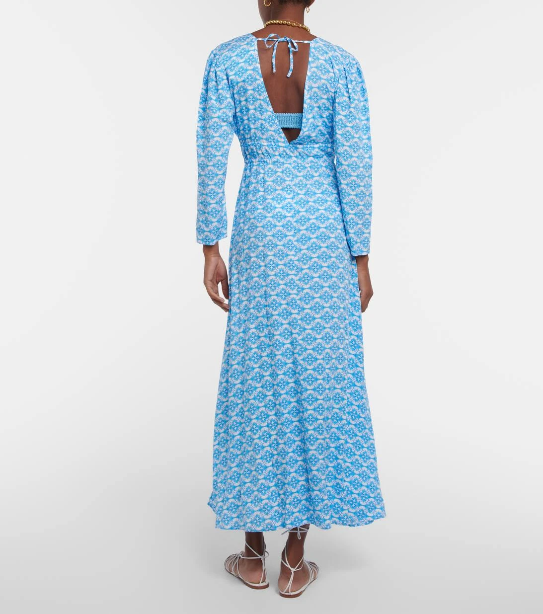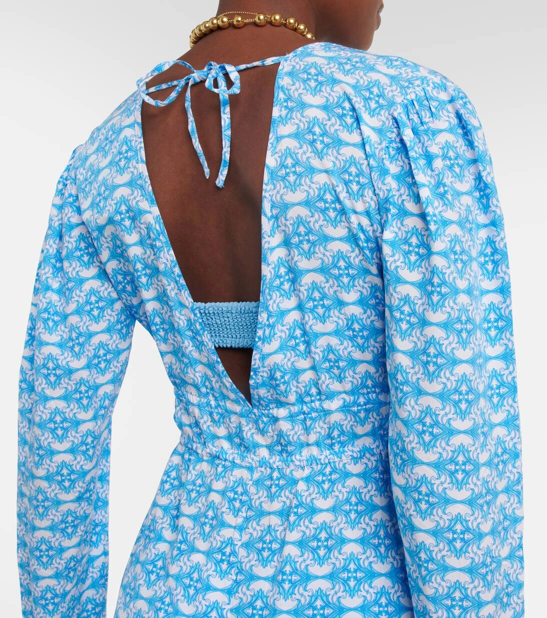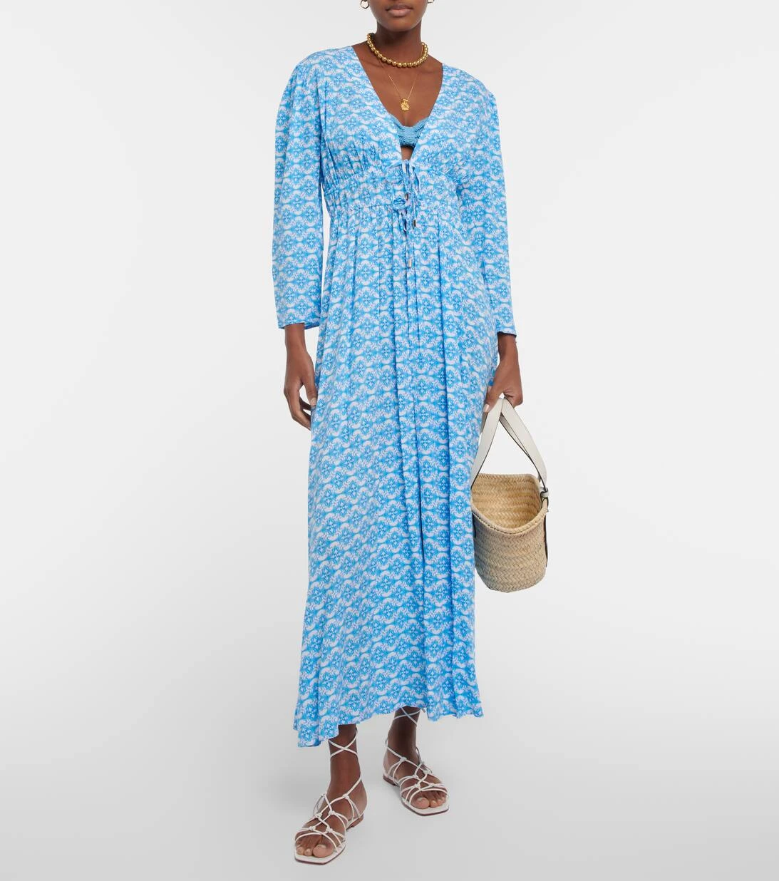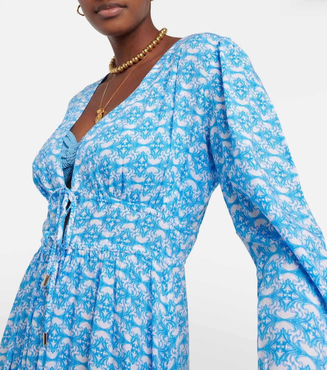Der Farrah Kaftan von Melissa Odabash besticht durch seinen eleganten Print, einen tiefen V-Ausschnitt, einen offenen Rücken sowie einen schmalen Taillengürtel zum Binden.