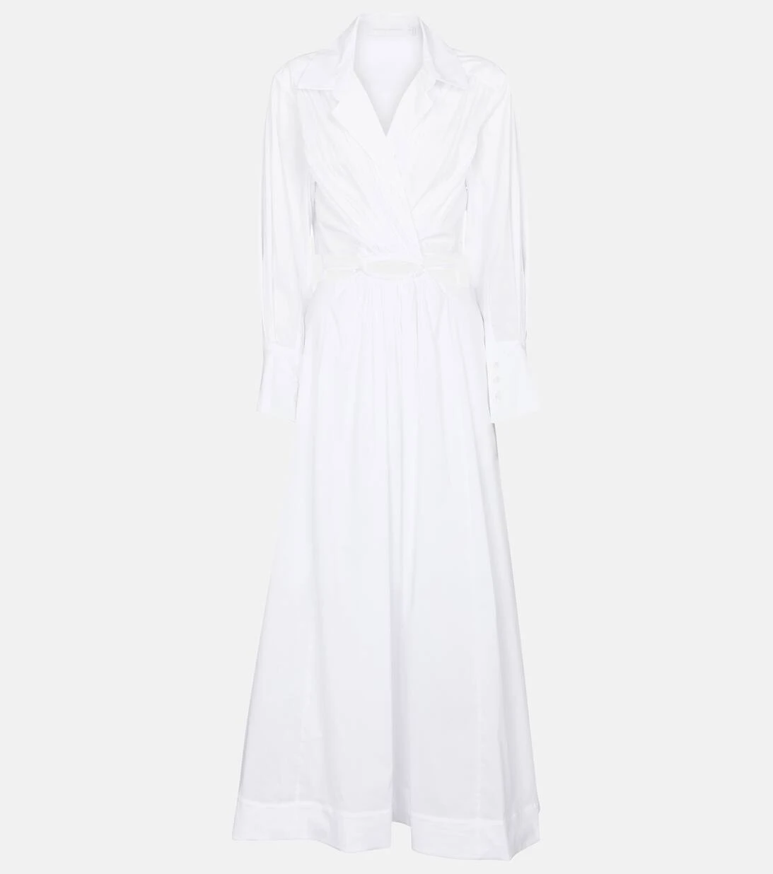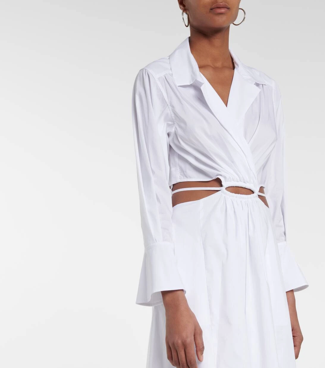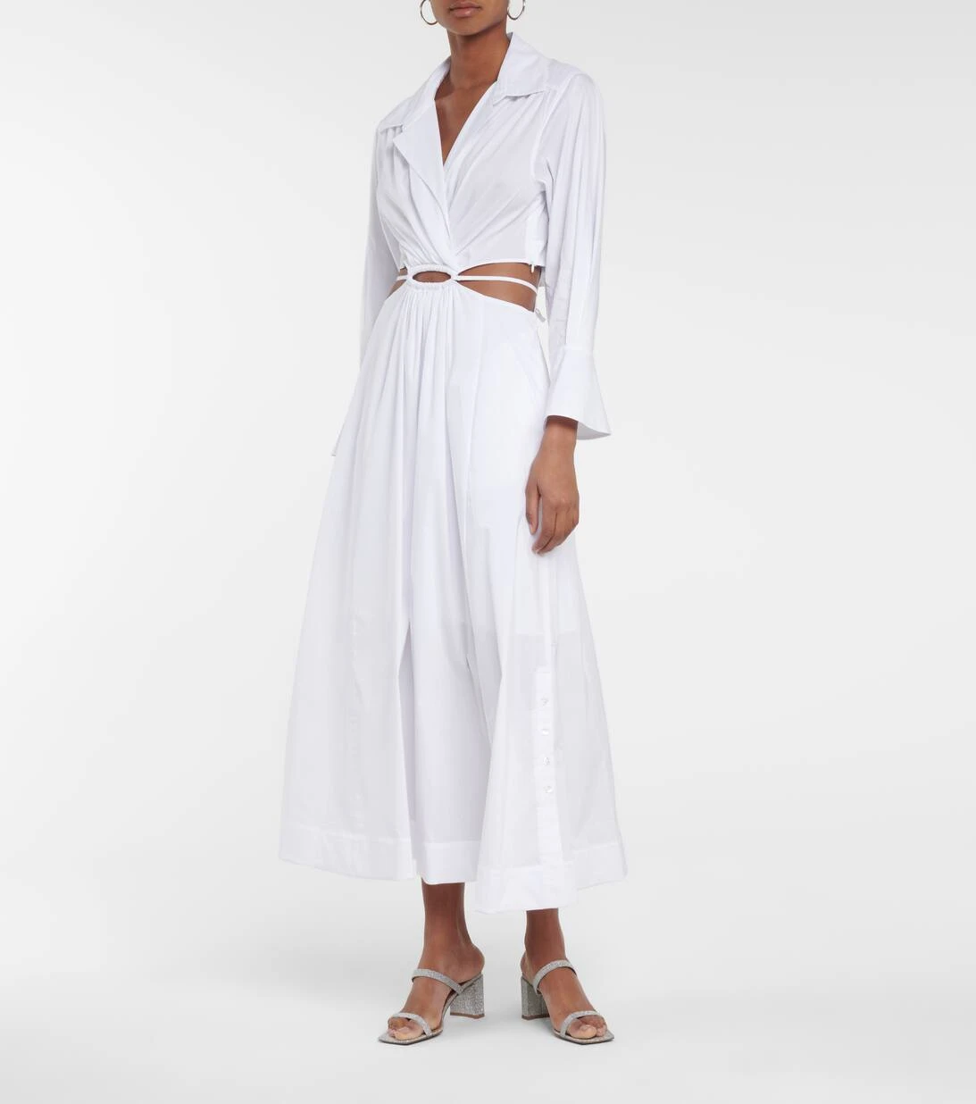 Das klassische Hemdblusenkleid erfährt bei Jonathan Simkhai in dieser Saison ein besonders aufregendes Update: Das Midikleid, das aus Popeline aus einem Baumwollgemisch besteht, ist mit sinnlichen Cut-outs gestaltet und wird von Raffungen sowie Tulpenärmeln perfektioniert. Lassen Sie die Knöpfe am Saum auch offen, um Ihre liebsten Sandalen gebührend zu präsentieren.