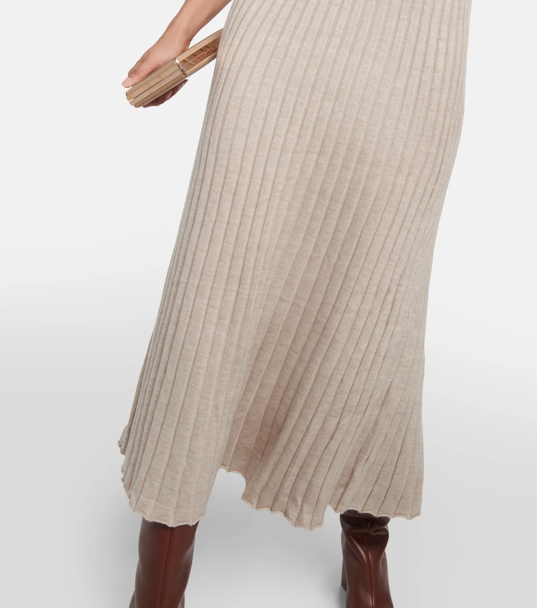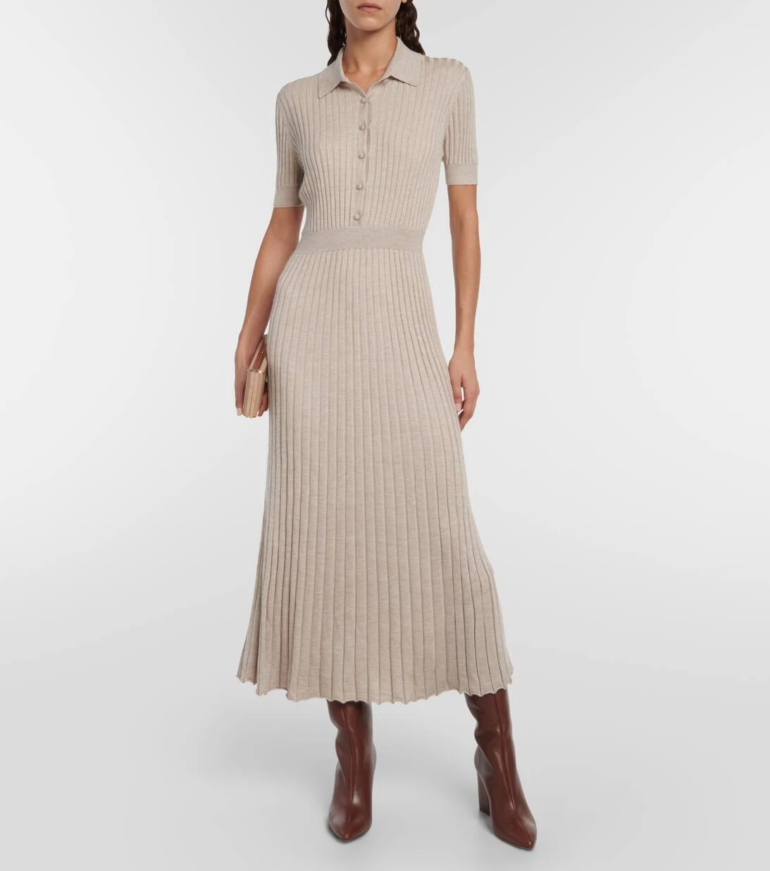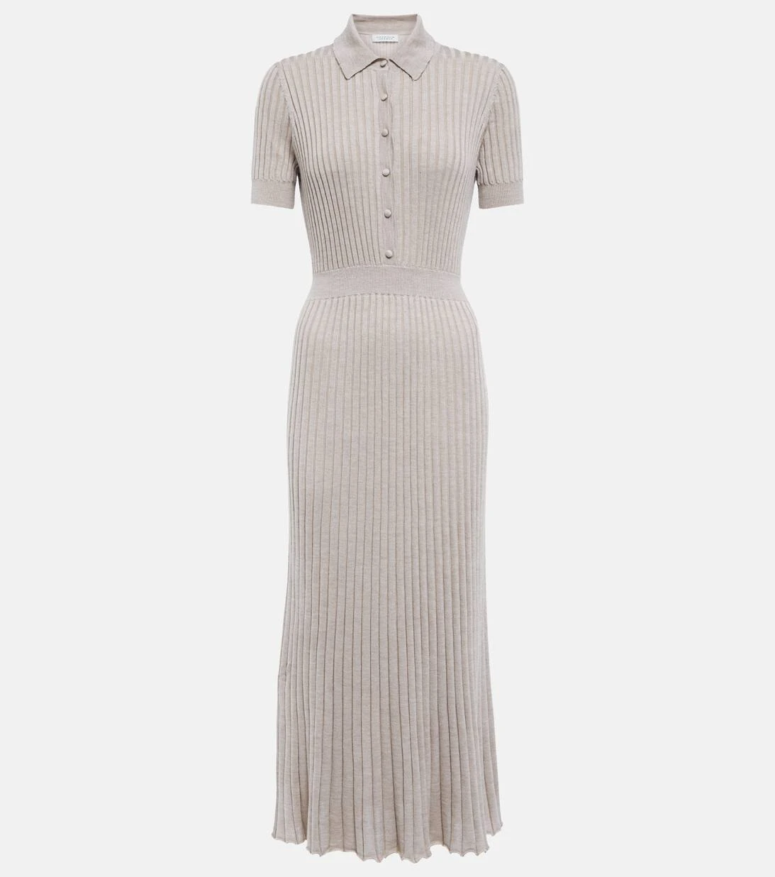 Das Amor Midikleid von Gabriela Hearst wurde aus einem luxuriösen Gemisch aus Seide und Kaschmir in Rippstrick-Optik gefertigt. Das kurzärmlige Modell verfügt über einen Polokragen, Knöpfe am Oberteil und eine figurbetonte Passform.