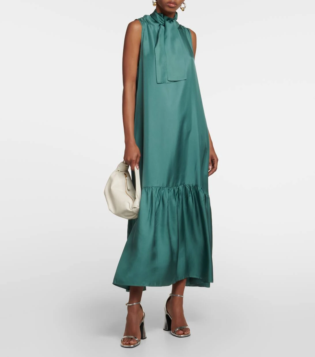 Mit dem ärmellosen Oslo Kleid von Asceno bringen Sie Farbe in Ihre Garderobe. Das Design mit langem Saum und Stehkragen wurde aus luxuriösem Seiden-Twill gefertigt.