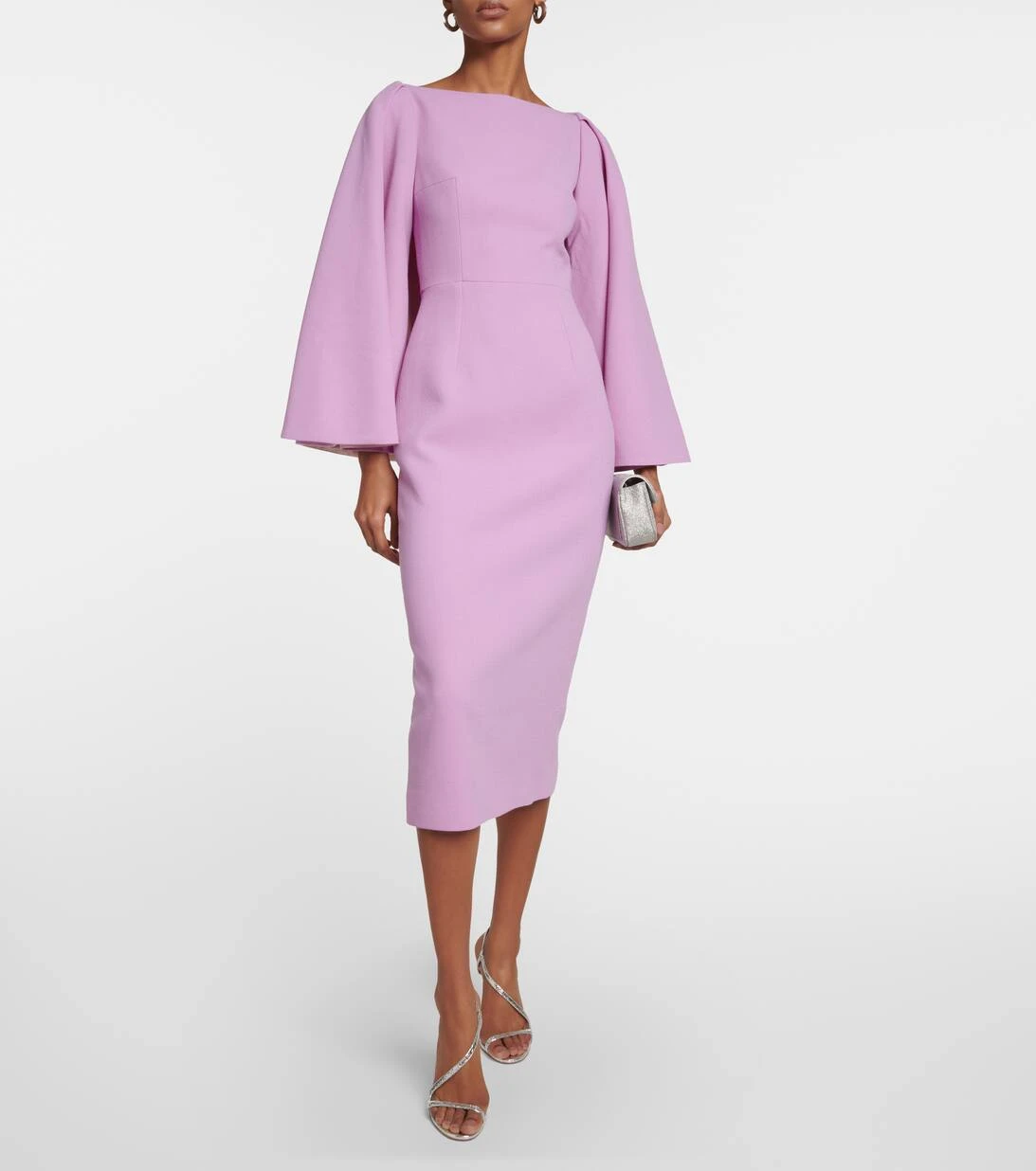Das Switzy Midikleid von Emilia Wickstead ist ein Design, das sich sanft an Ihre Figur anschmiegt. Es wurde aus Crêpe aus doppellagiger Wolle gefertigt und mit eleganten, Cape-ähnlichen Ärmel sowie gepolsterten Schultern versehen, die dem Style zusätzliche Struktur verleihen.