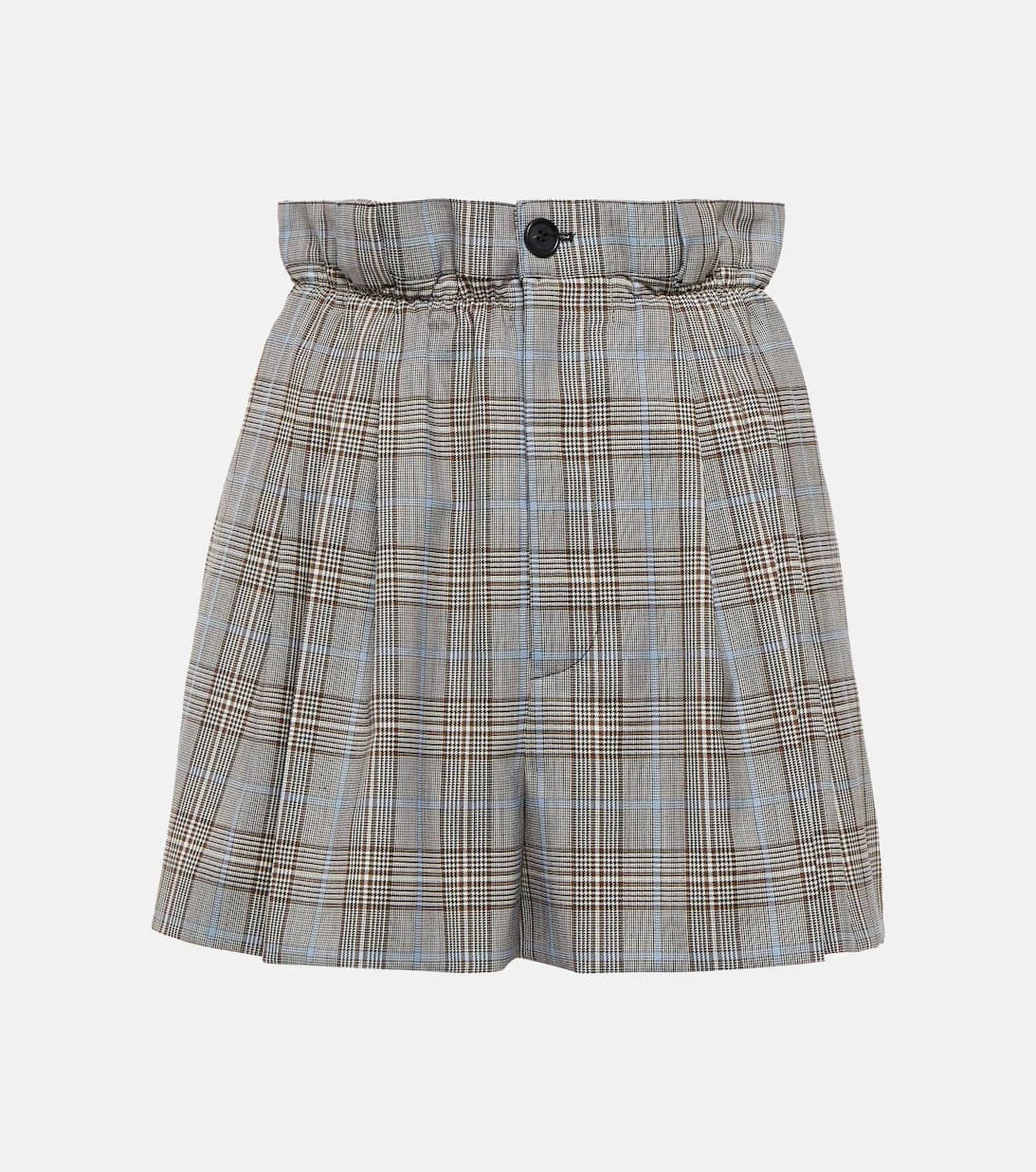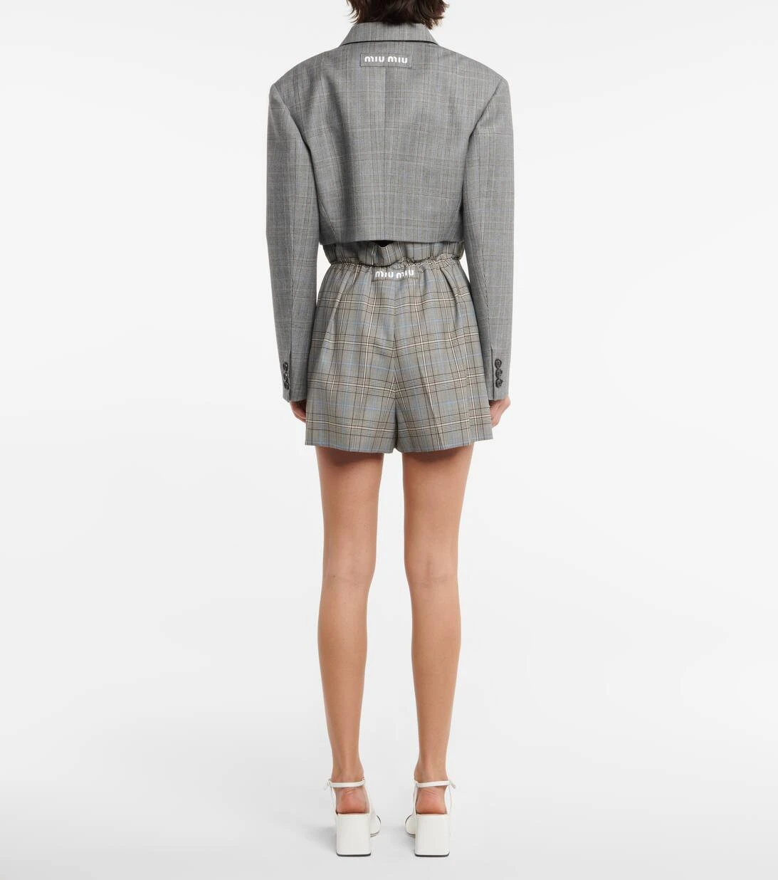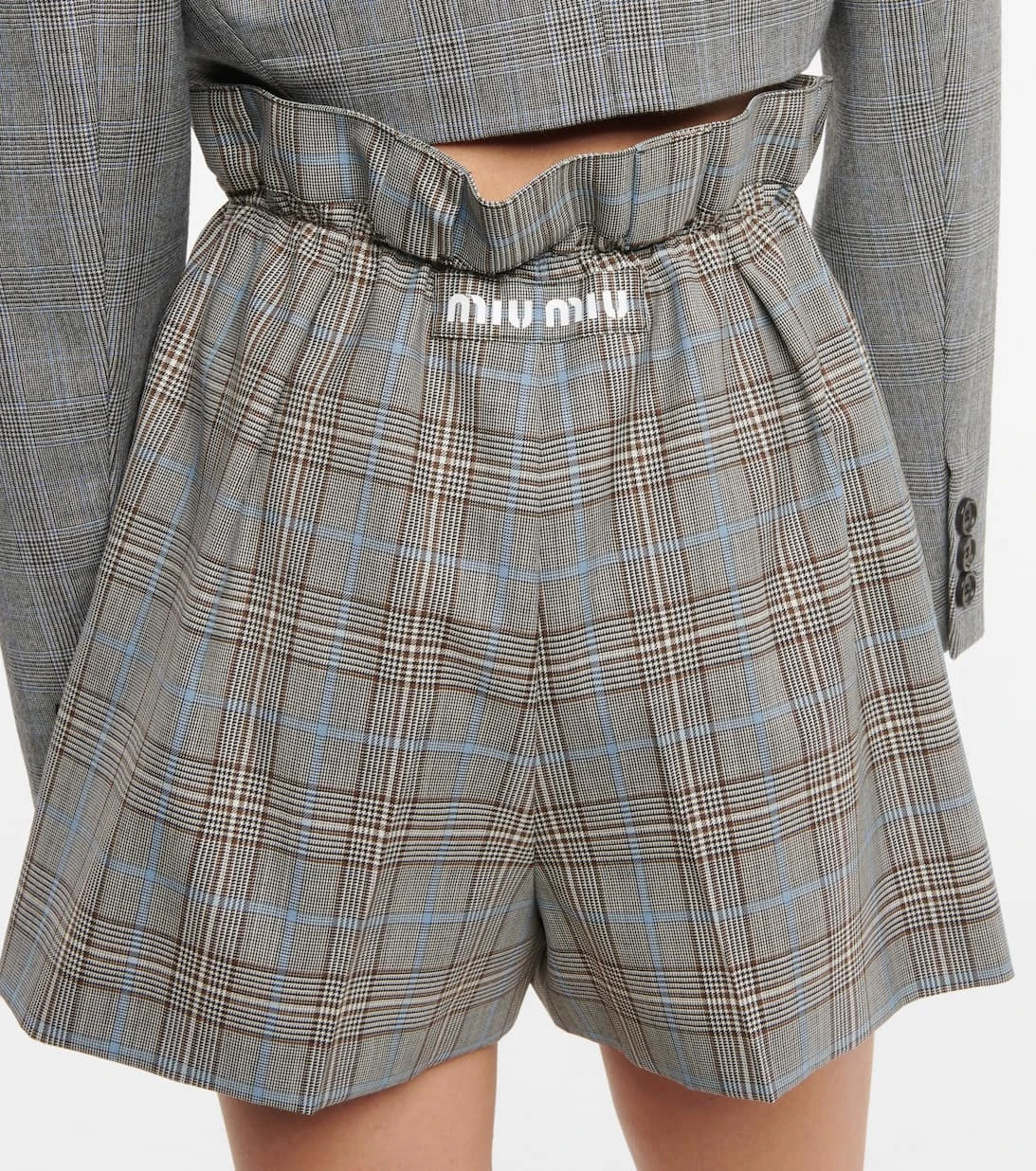 Die verspielten Looks von Miu Miu präsentieren sich in dieser Saison auf die klassische Art. Diese grauen Shorts mit elastischem, ausgestelltem Bund verfügt über einen geraden Schnitt und ein feines Karomuster. Kombinieren Sie das Modell aus Schurwolle zum passenden Blazer.