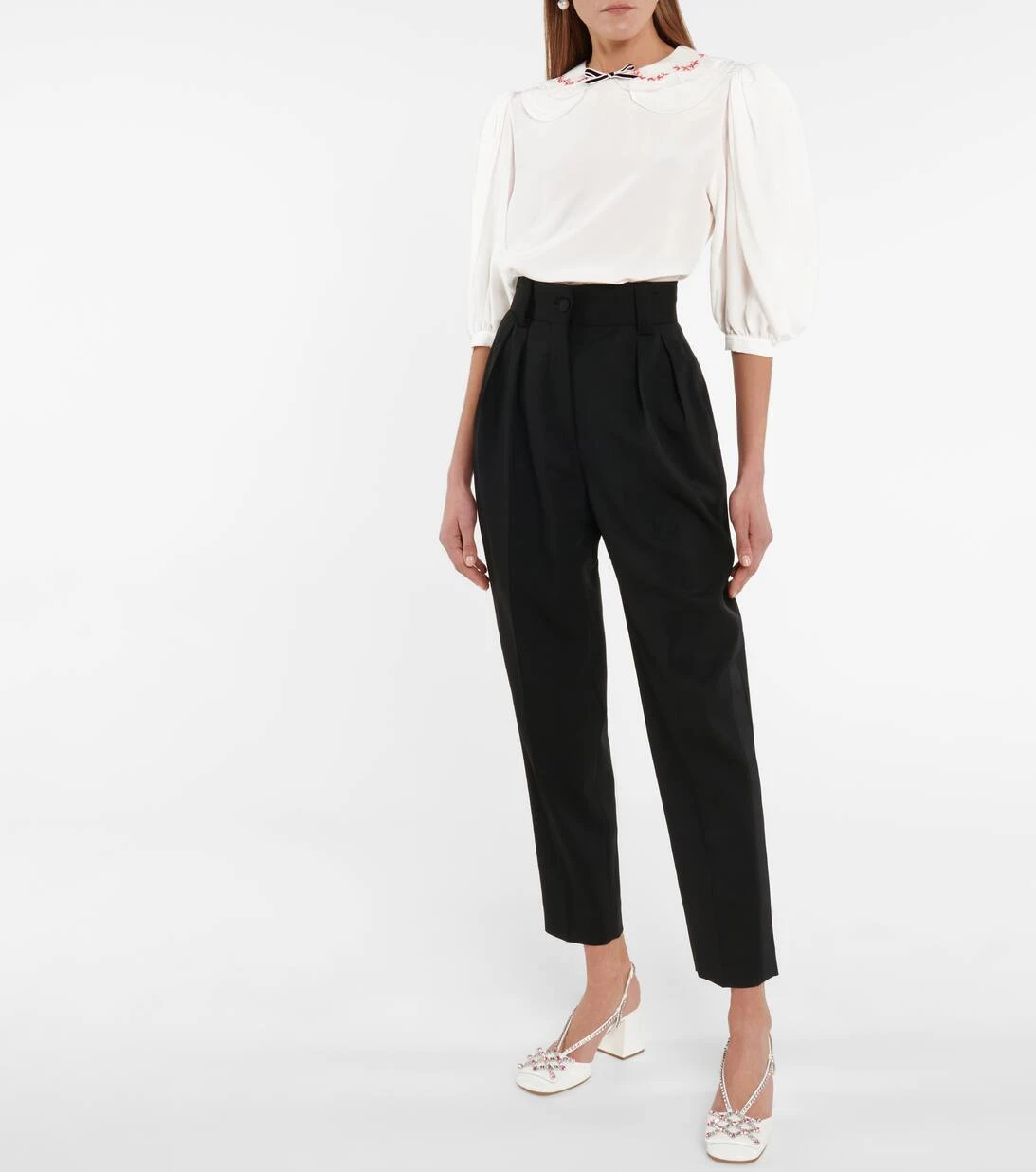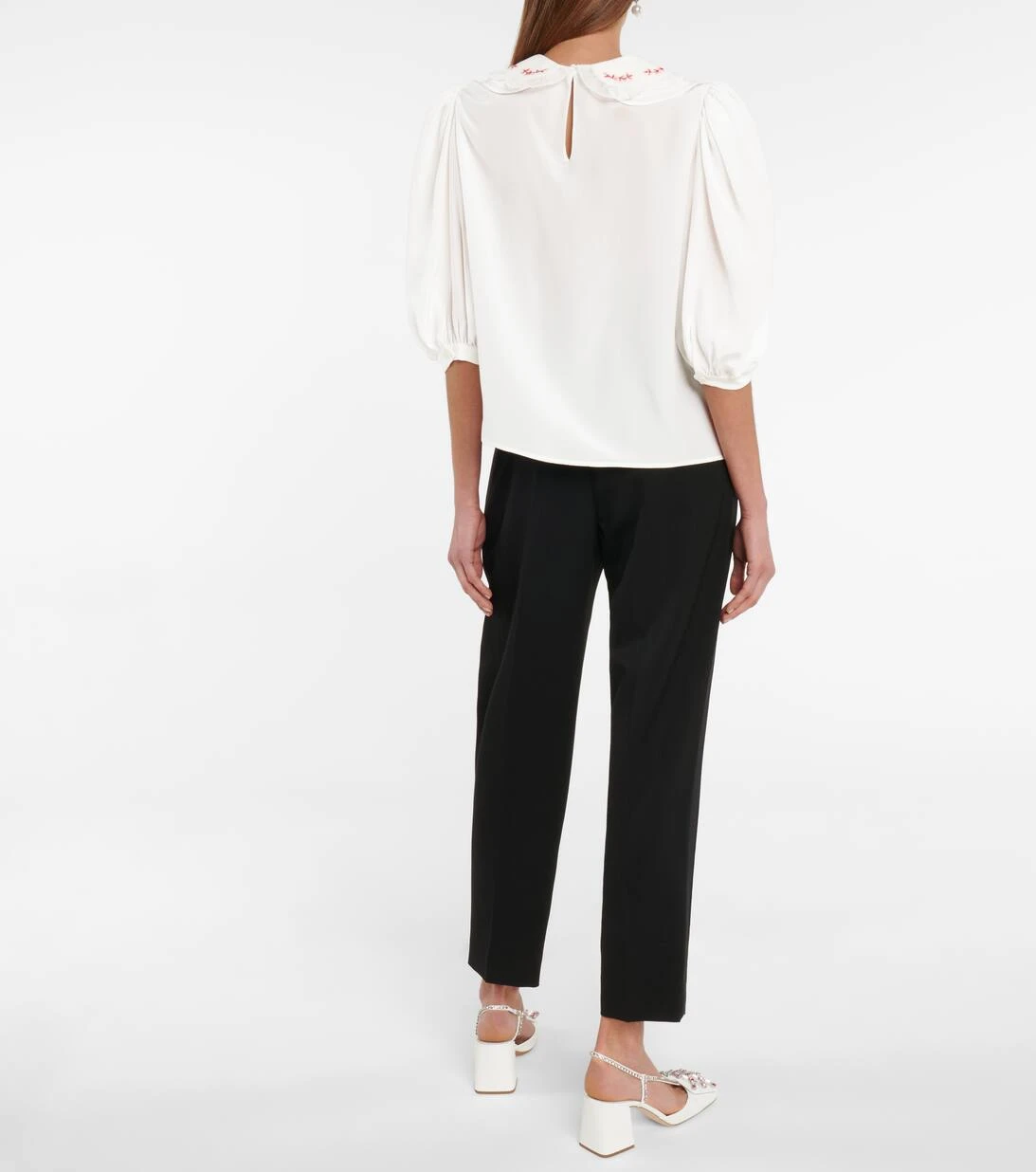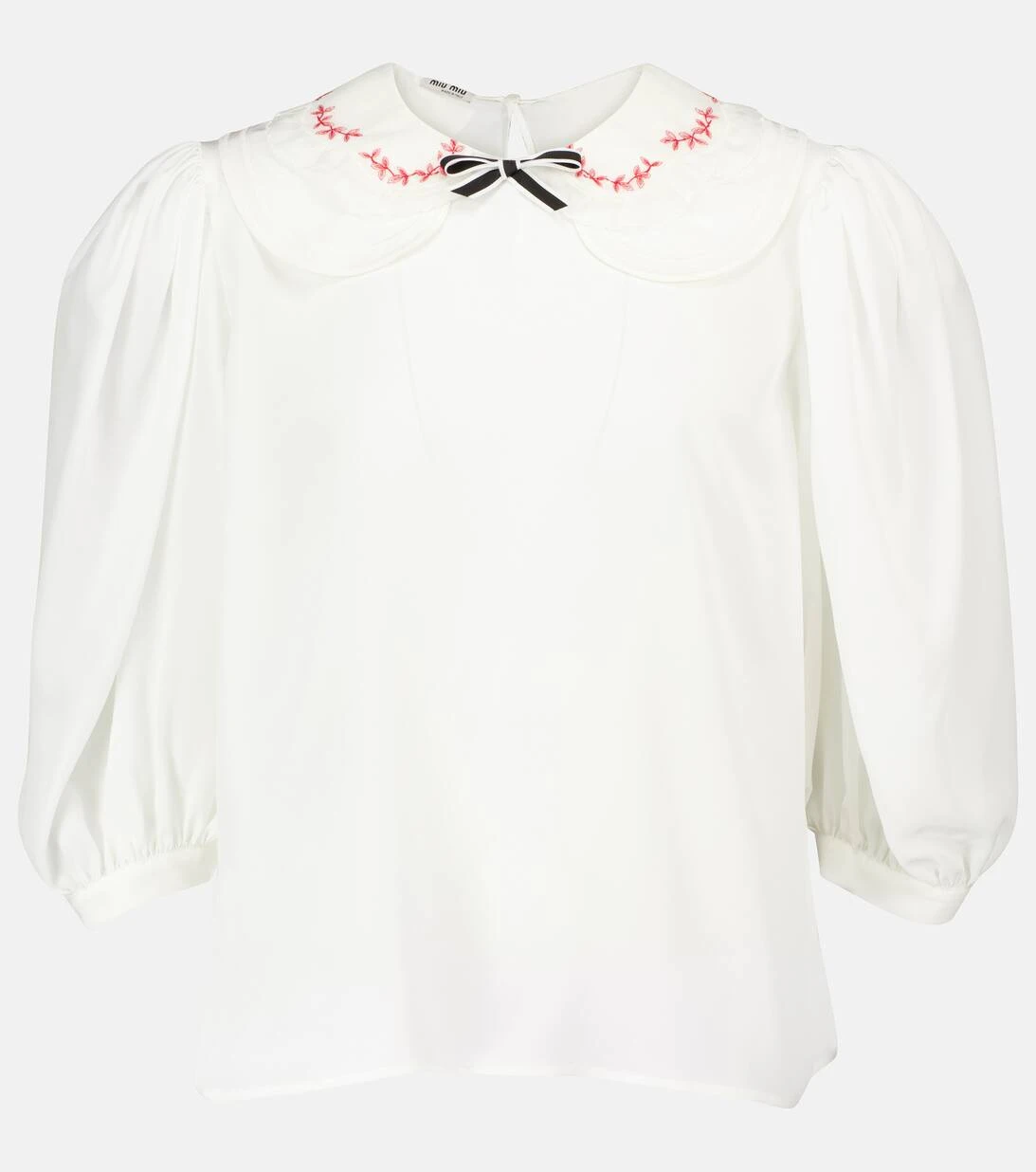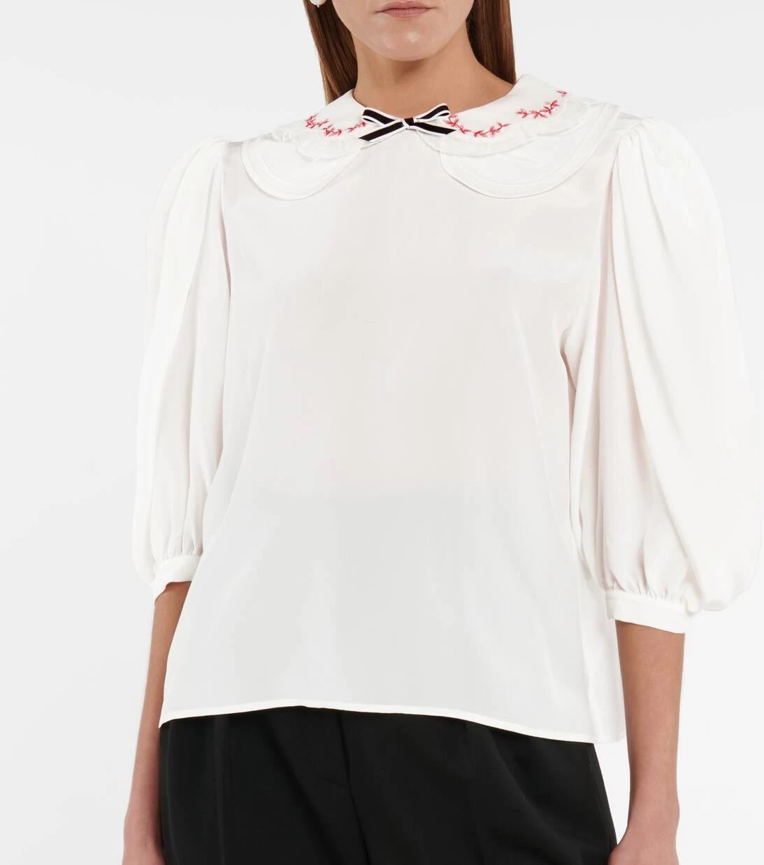 Edle Tops gehören zu den Designs, die uns das ganze Jahr über begleiten: Während Sie im Sommer als Alleingänger fungieren, funktionieren Sie an kalten Tagen als Teamplayer im Layering-Look zu edlen Cardigans oder Pullovern genauso gut. Das weiße Modell von Miu Miu wurde in Italien aus reinem Crêpe de Chine aus Seide gefertigt und zeigt sich in labeltypischer Manier samt verkürzten Ballonärmeln und einem verspielten Bubikragen. Stecken Sie den Style in einen eleganten Rock ein.