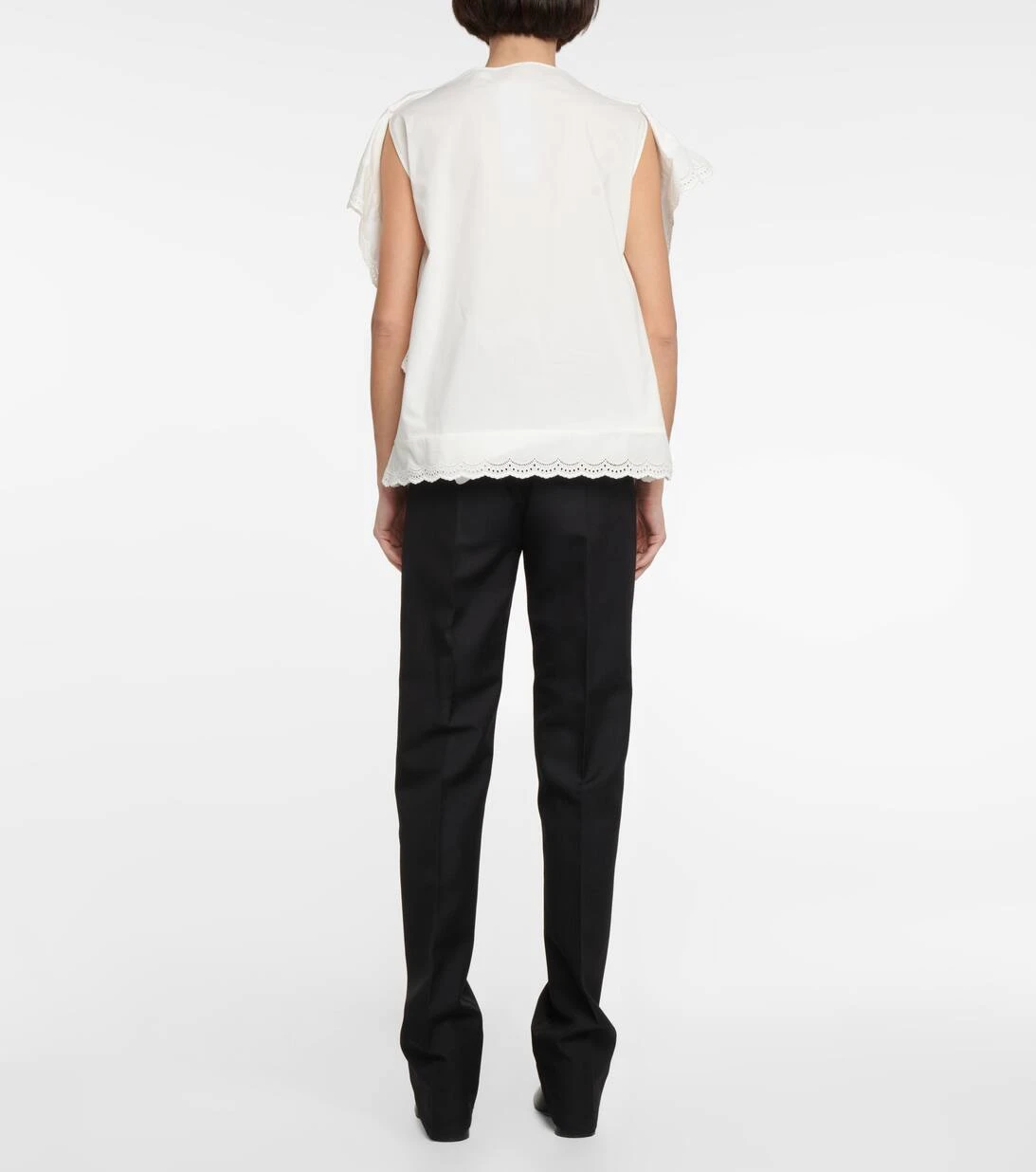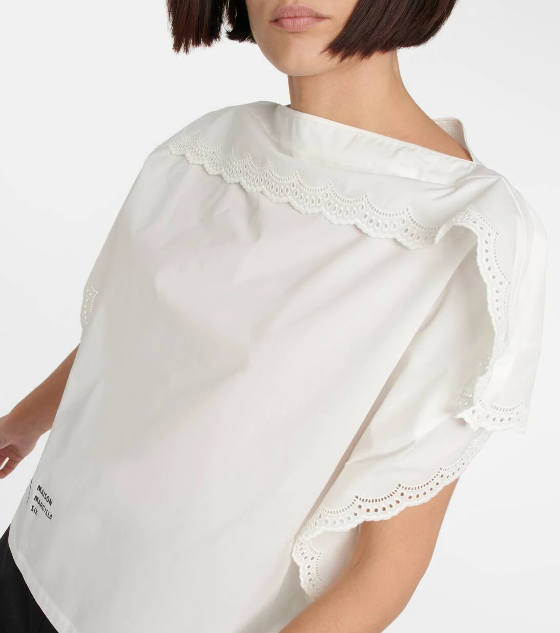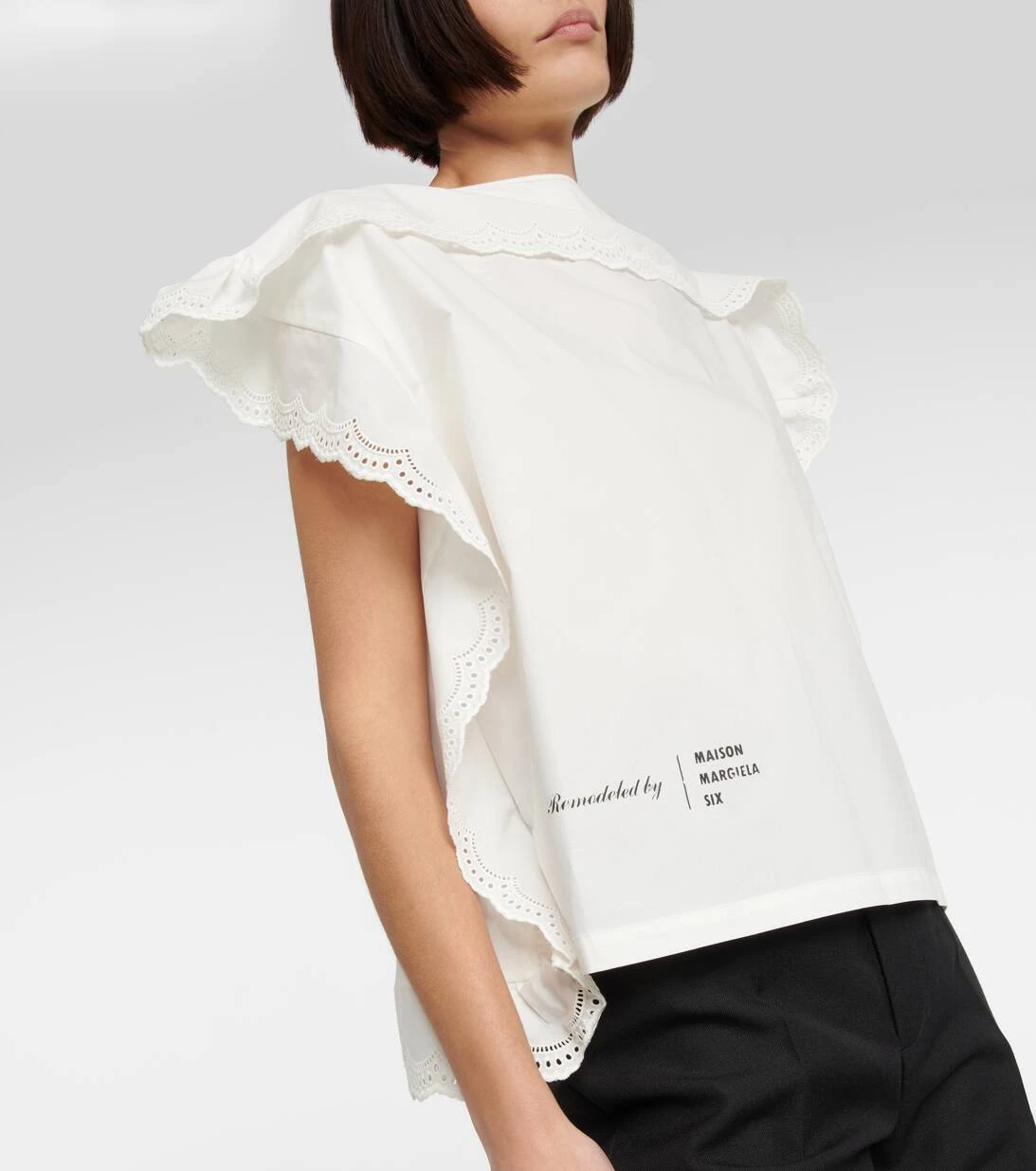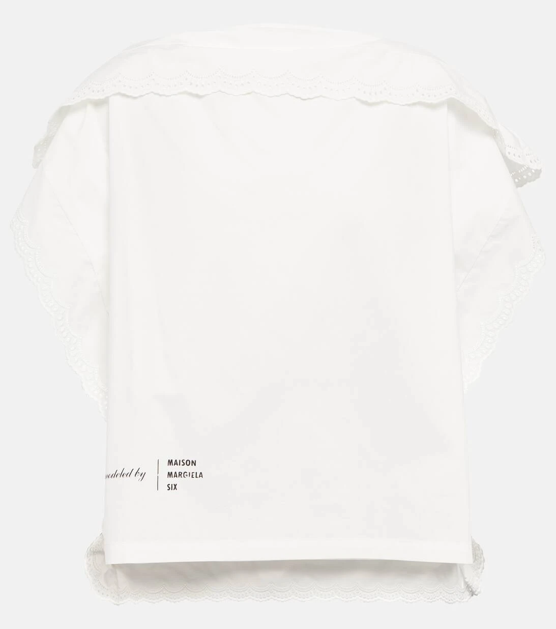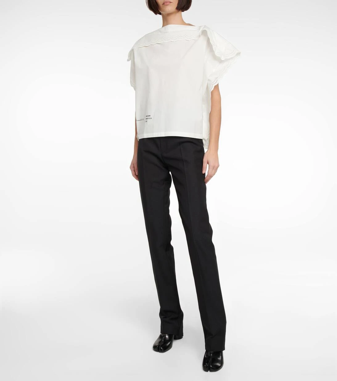 MM6 Maison Margiela verleiht der klassischen weißen Bluse einen modernen Twist. Das geradlinige Design aus reiner Baumwolle erhält durch feine, wellenförmige Rüschen an den Schultern und Ärmeln einen wunderschönen Kontrast.
