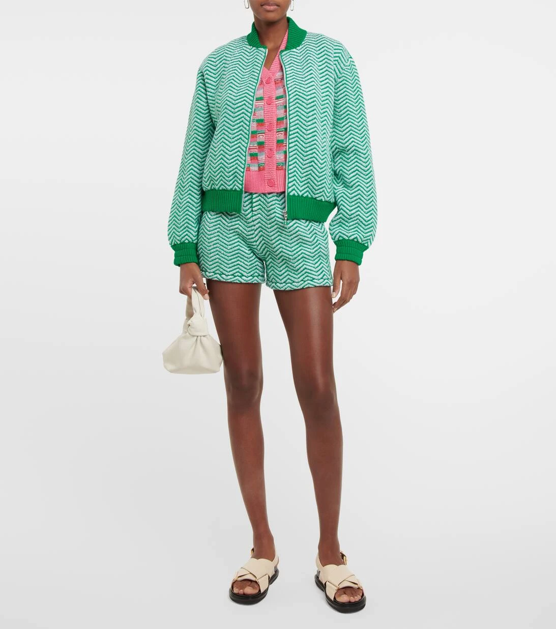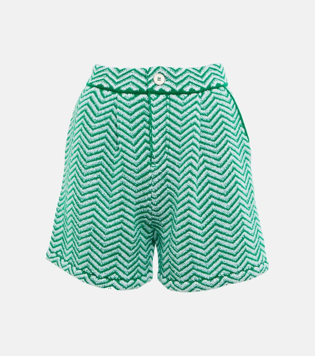 Die schottische Marke Barrie bringt mit diesen lebhaften Shorts Trompe-l’oeil in Ihre Urlaubsgarderobe. Das Modell aus einem Baumwoll-Kaschmirgemisch mit leichtem Chevron-Motiv ist mit tonalen Paspelierungen versehen.