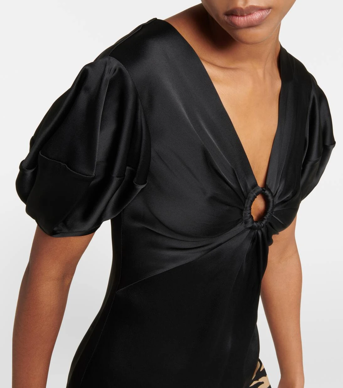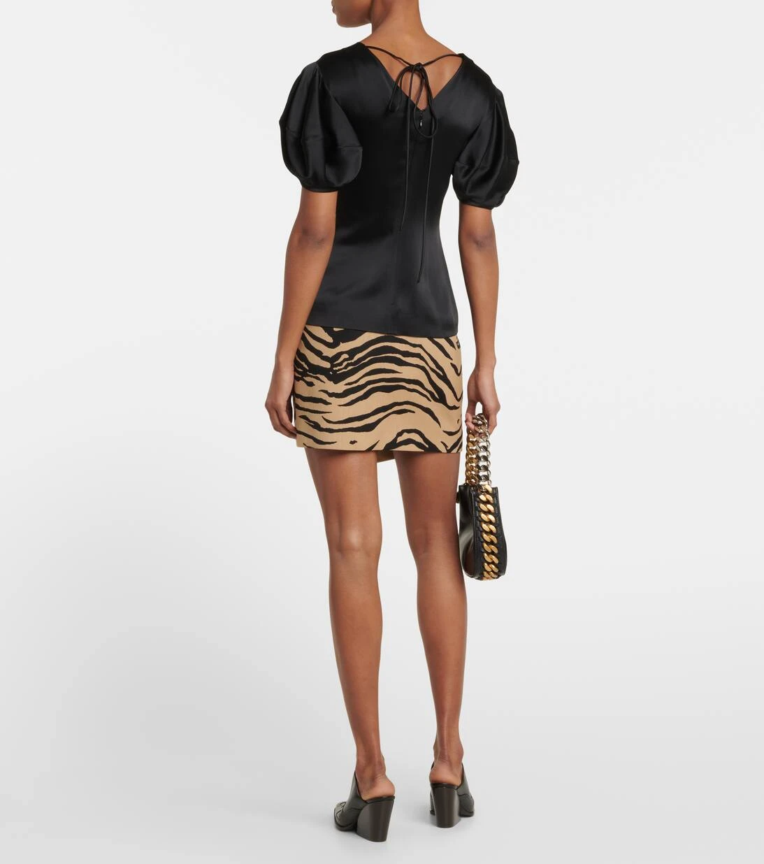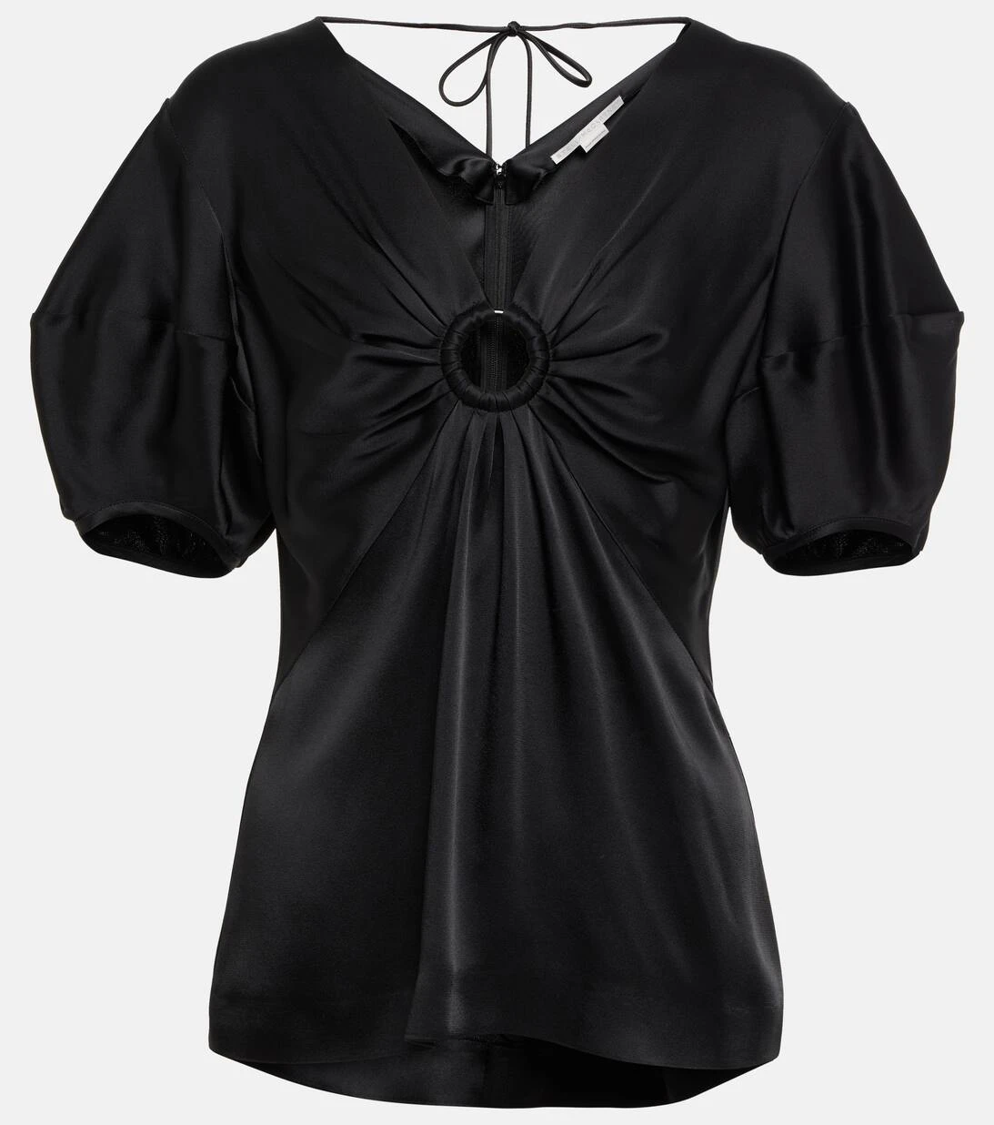 Dieses schlichte und zugleich elegante Top aus Satin von Stella McCartney kann sowohl im Office als auch zu eleganten Events getragen werden. Das Modell zeichnet sich durch ein Ringdetail auf der Brust und dezente Puffärmel aus.
