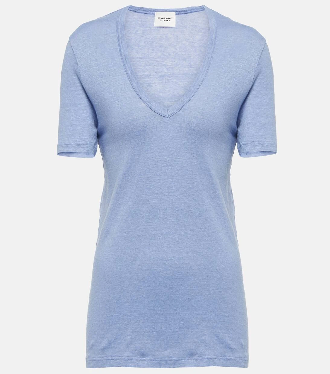 Komplettieren Sie Ihre Urlaubslooks mit dem luftigen Kranger T-Shirt von Isabel Marant, Étoile. Das hellblaue Design aus leichtem, atmungsaktivem Leinen-Jersey hat einen tiefen V-Ausschnitt und eine schmale Passform.