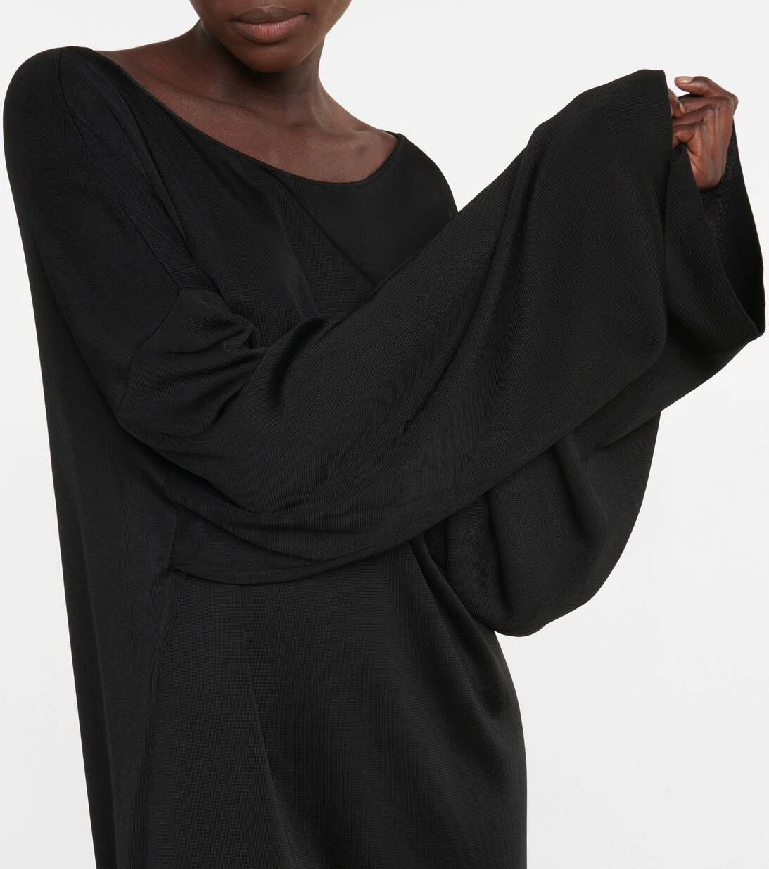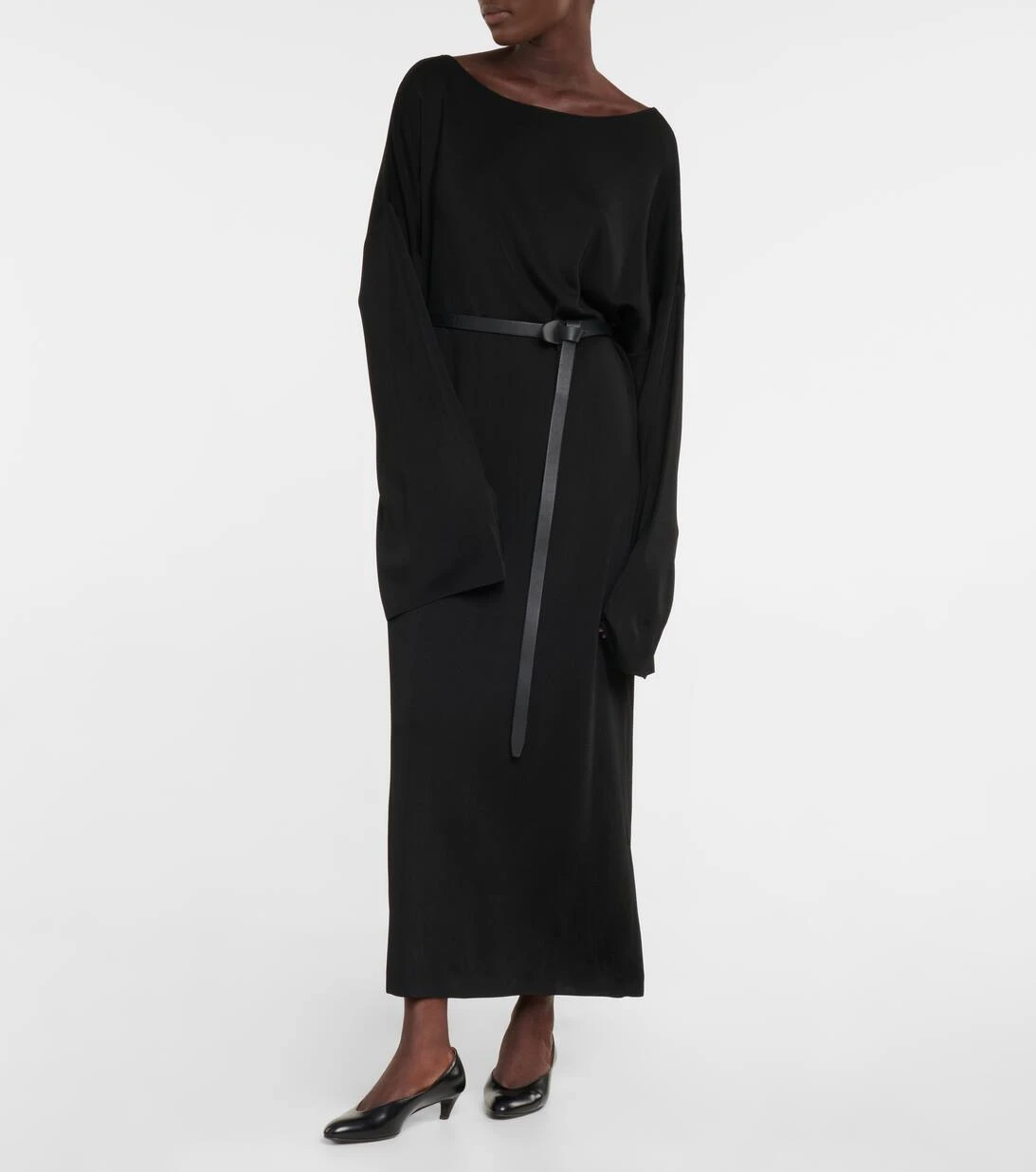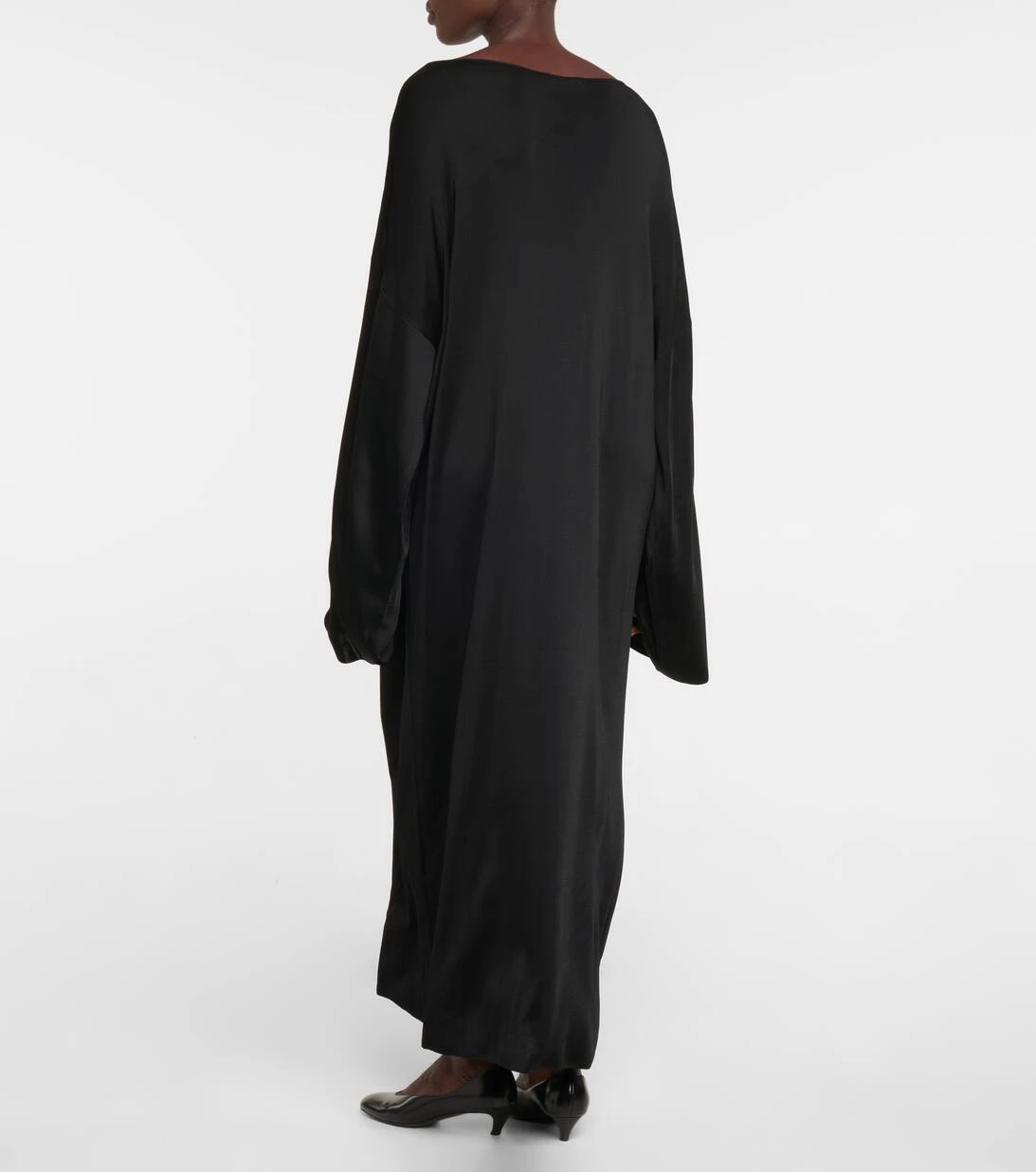Das Stephie Kleid von The Row präsentiert sich in einer Oversize-Silhouette mit überschnittenen Schultern und langen Ärmeln. Das lockere Design hat einen weiten Ausschnitt mit gerolltem Saum.