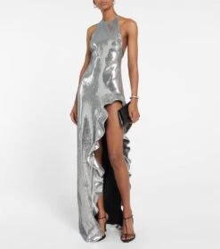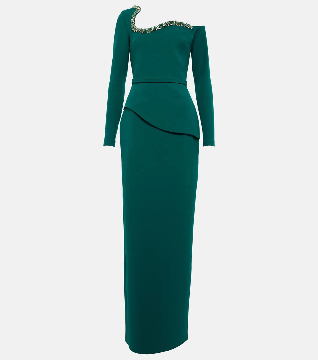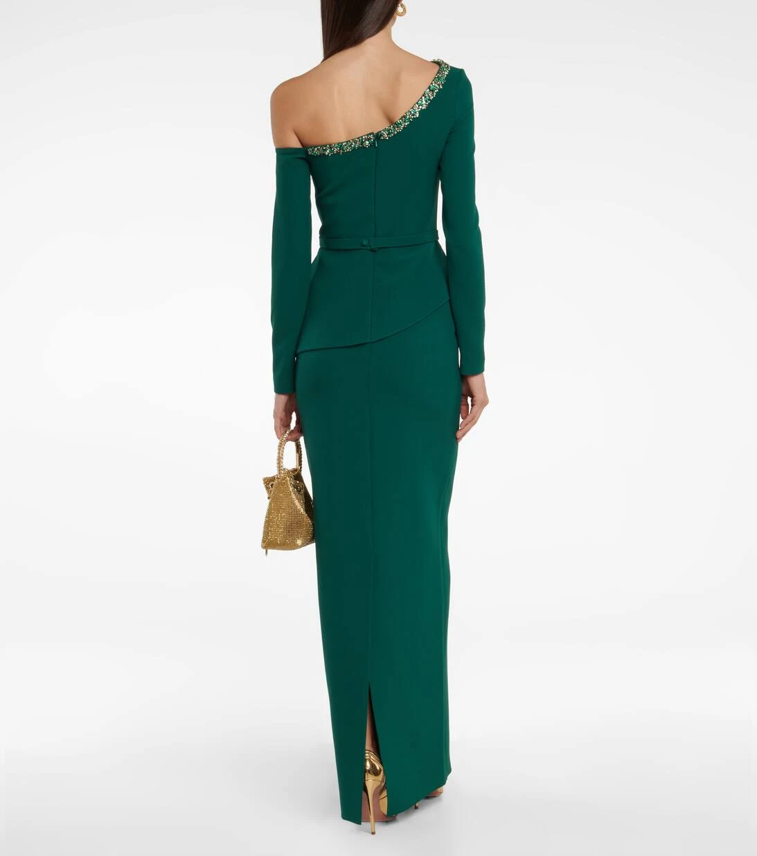 Das Aime Botanic Top von Safiyaa mit modernem One-Shoulder-Ausschnitt und asymmetrischem Saum zeigt sich mit einem verzierten Besatz. Das Modell wurde aus dem für die Marke charakteristischen schweren Crêpe gefertigt – einem Material, das durch seine elegante Drapierung besticht.