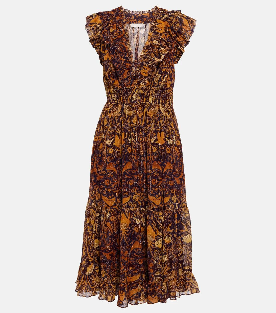 ULLA JOHNSON Bedrucktes Midikleid Samara Aus Chiffon