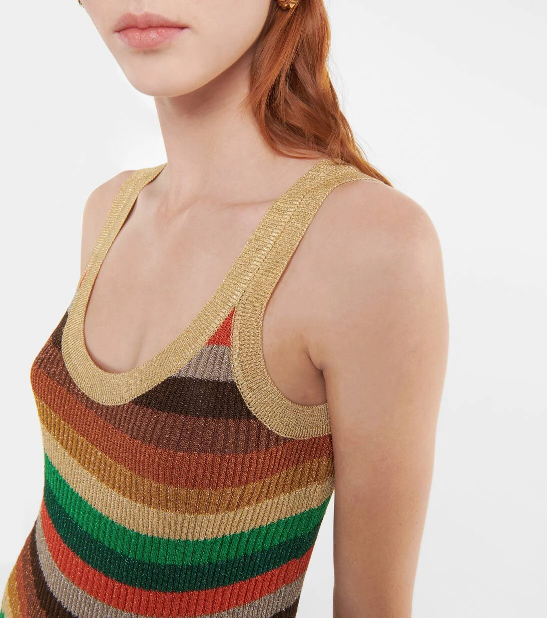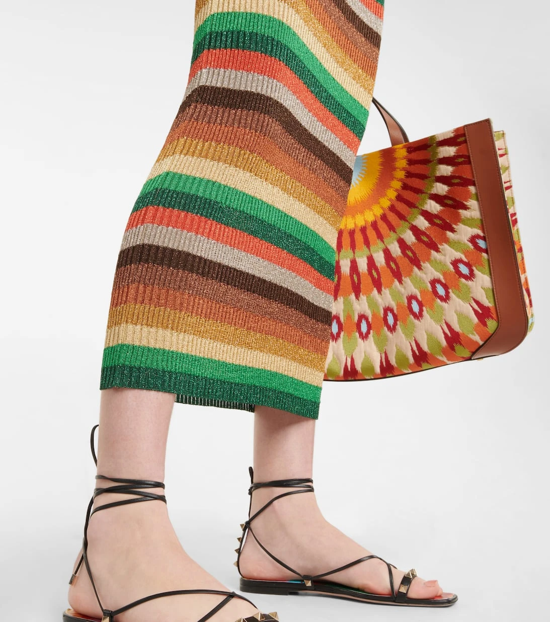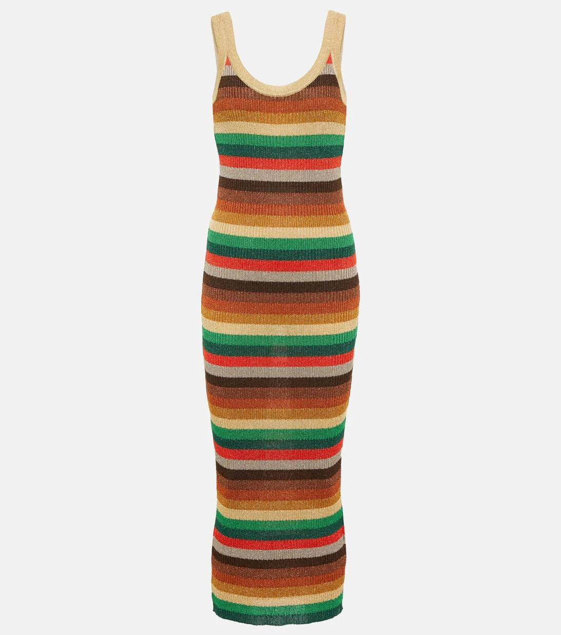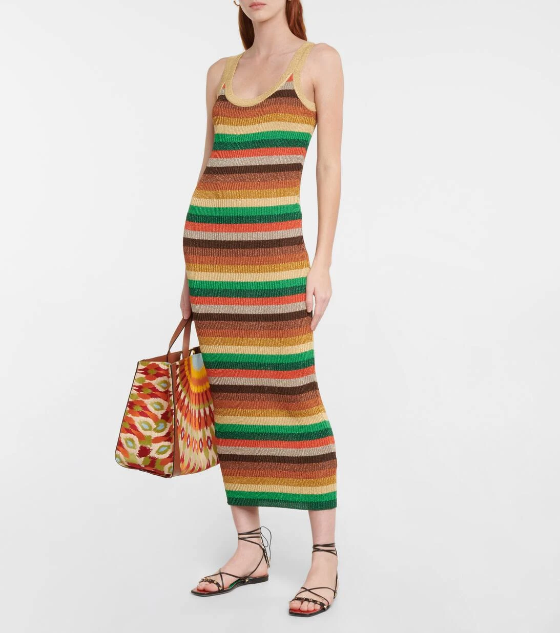 Valentinos exklusive Escape Capsule Collection für Mytheresa präsentiert Styles, die wie geschaffen für einen unvergesslichen Sommer sind. Dieses gestreifte Midikleid wurde aus Lurex®-Garn gestrickt und mit Metallic-Fäden durchwoben.