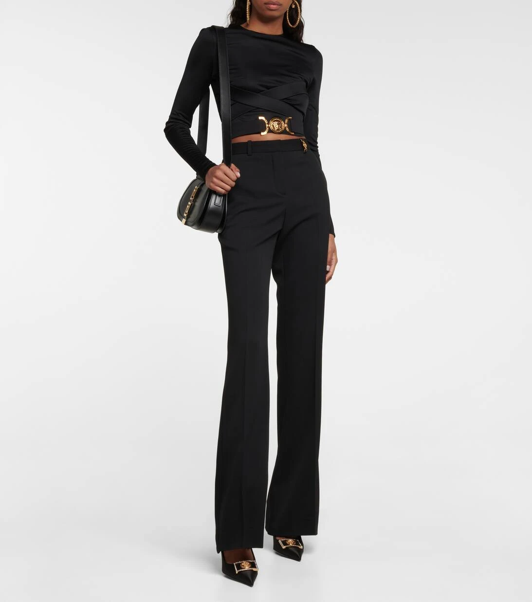 Diese Hose mit geradem Bein von Versace ist eine eindrucksvolle Wahl für Ihre Office-Looks. Das Modell aus elastischer Wolle sitzt für eine vorteilhafte Passform hoch auf der Taille.