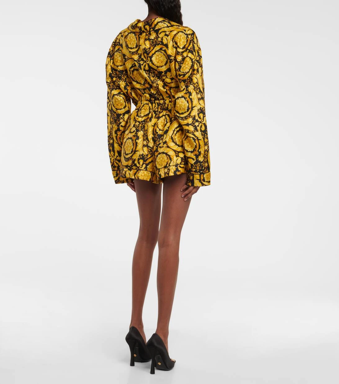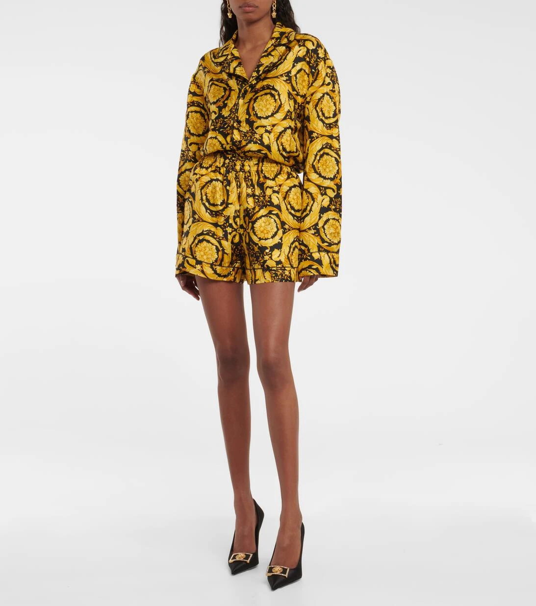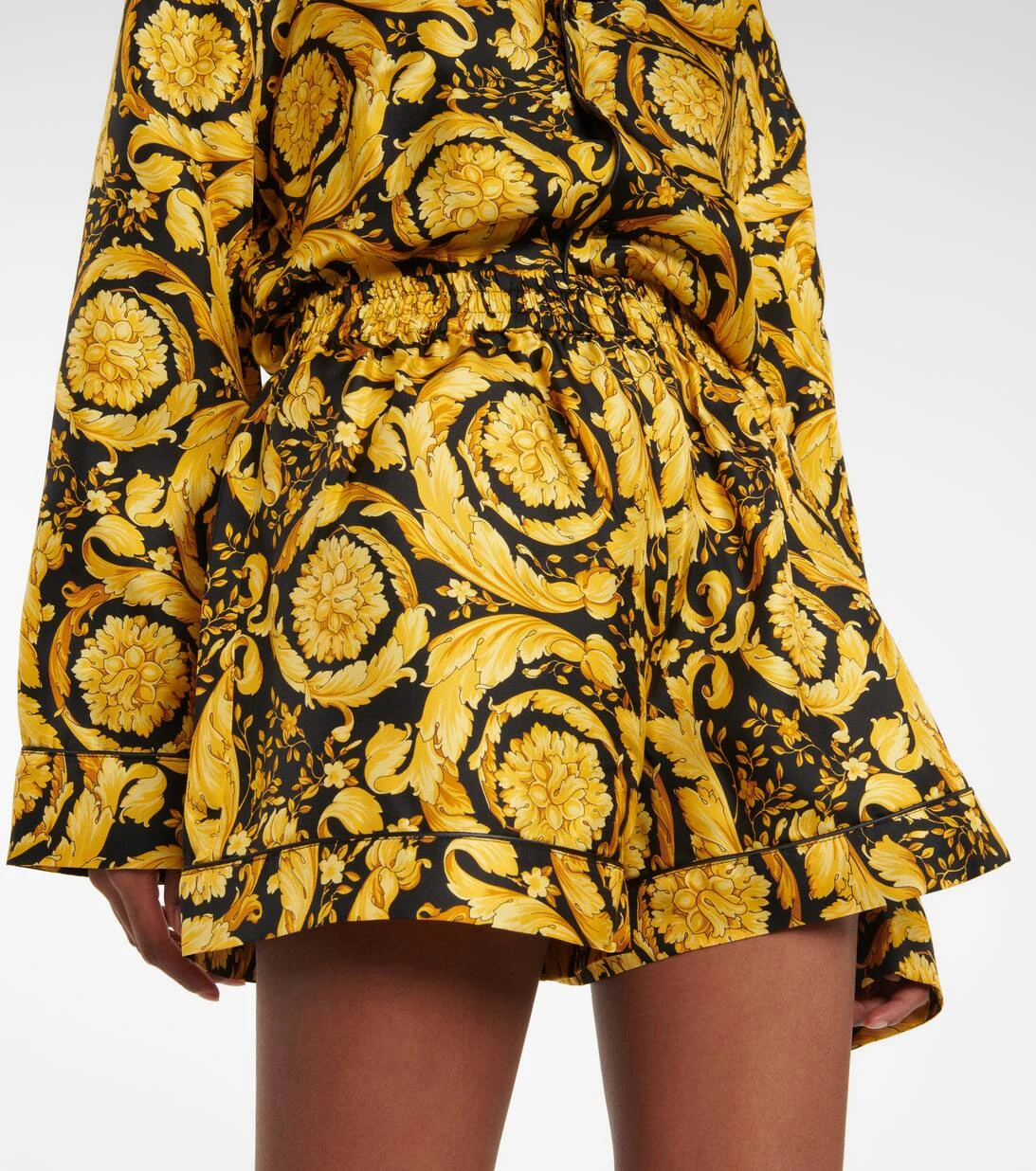 Die vom Barockstil inspirierten Versace-Motive erinnern an die aufwendigen Verzierungen des 17. Jahrhunderts. Diese Shorts wurden in Italien aus reiner Seide gefertigt und verfügen über einen elastischen Bund, der hoch auf der Taille sitzt.