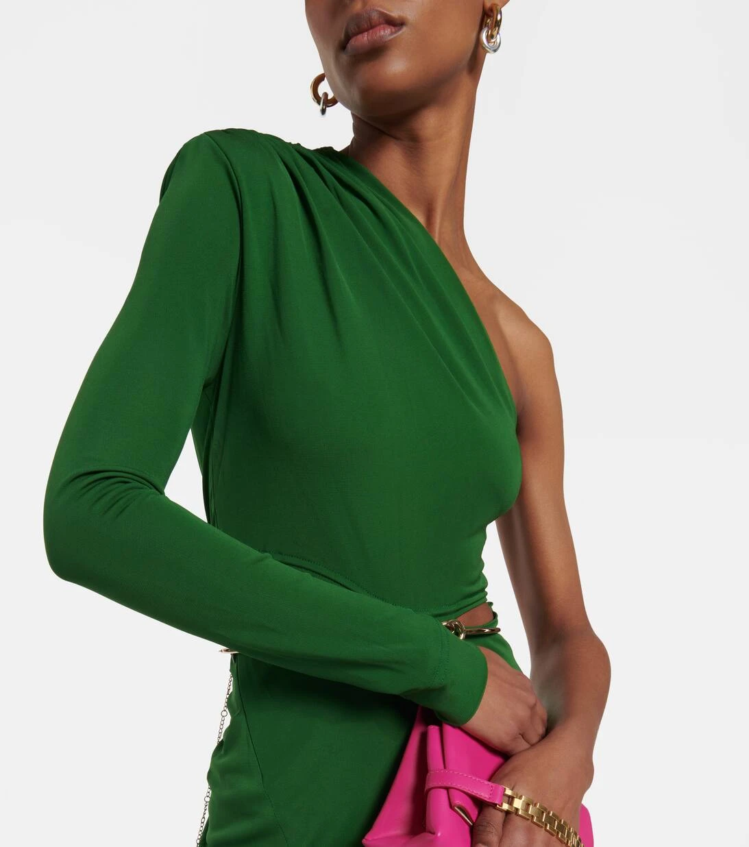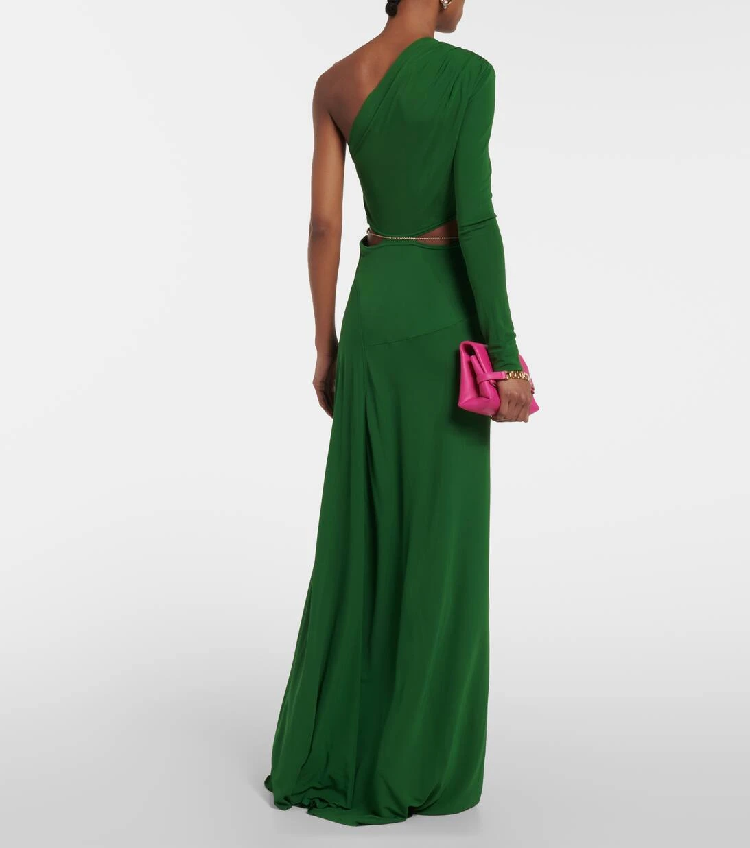 Diese One-Shoulder-Robe von Victoria Beckham sorgt für einen glamourösen Abendlook. Das bodenlange Modell aus fließendem Jersey zeichnet sich durch Drapierungen an der Schulter, Cut-outs an der Taille und einen goldfarbenen Gürtel aus.