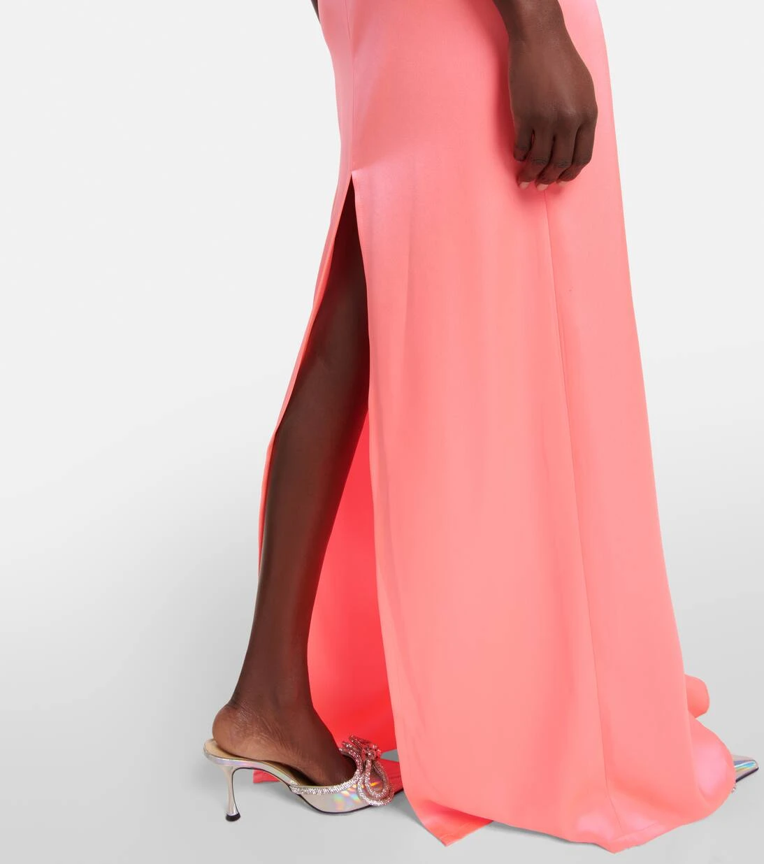 Dieses Wickelkleid aus Satin von David Korma umspielt den Körper mit einer lockeren Silhouette und kaskadierenden Rüschendetails. Das Design wird von gepolsterten Schultern und Ziertaschendetails abgerundet, die für einen optischen und strukturellen Stil sorgen.