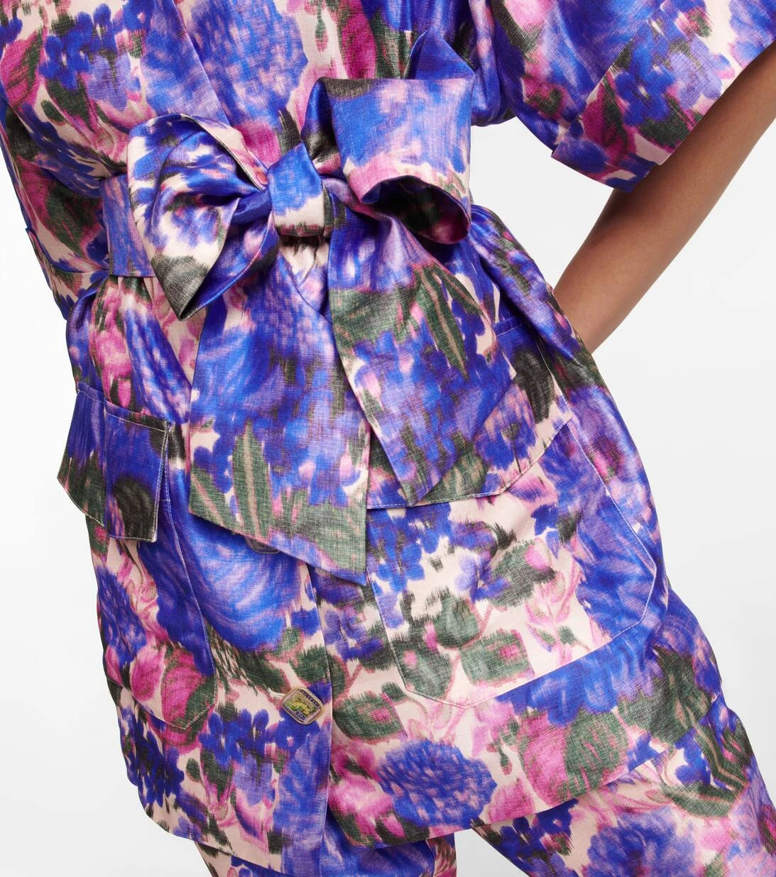 Das lässige High Tide Oversize-Hemd von Zimmermann wurde aus Seide gefertigt und mit einem durchgehenden Blumen-Print verziert. Es zeigt sich mit einer strukturierten Silhouette samt Taillengürtel und Manschettenärmeln.